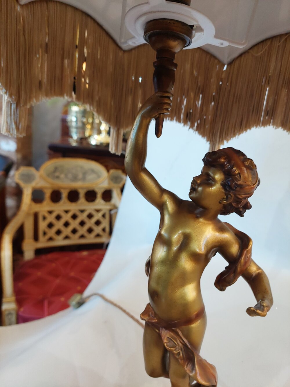 Bronze Cherub Statuette Converted to a Table Lamp