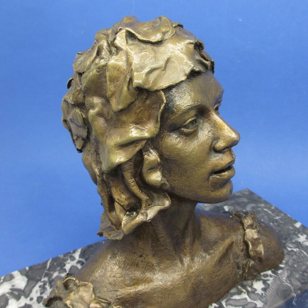 The bust depicts Nijinsky in a short ballet Le Spectre de la Rose, when a young girl who dreams of dancing with the spirit of a souvenir rose from her first ball.