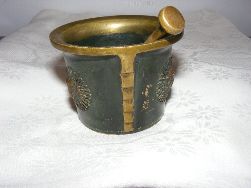 Oriental Brass Pestle and Mortar An unusual pair