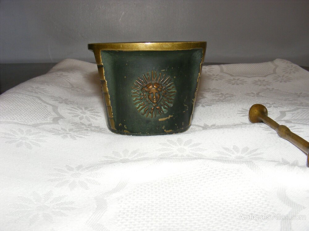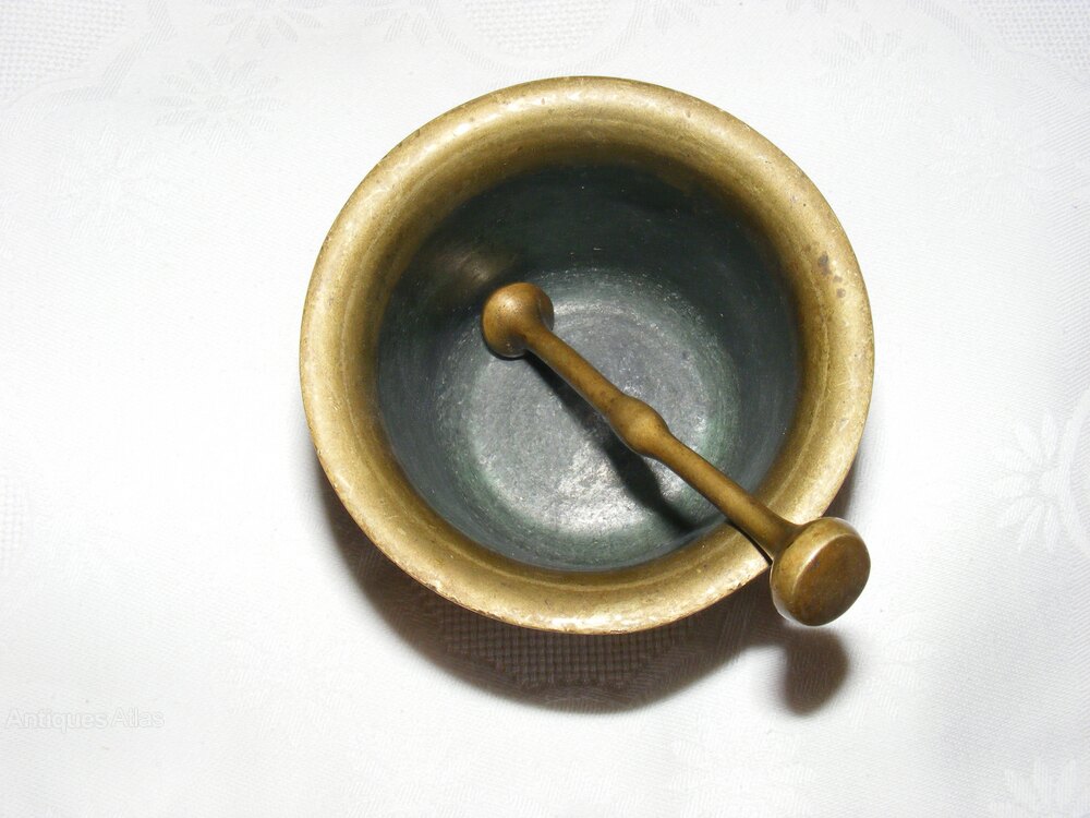 Antique Mortar And Pestle, English, Brass