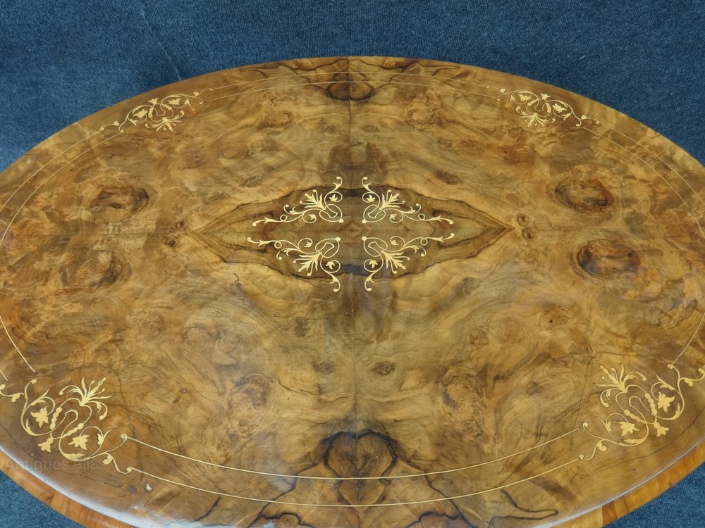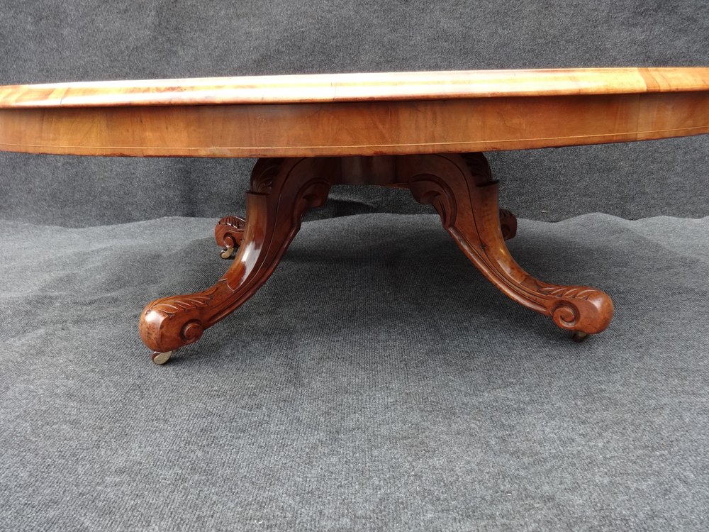 A good Victorian burr walnut coffee table/low table, in good condition, standing on brass castors.
