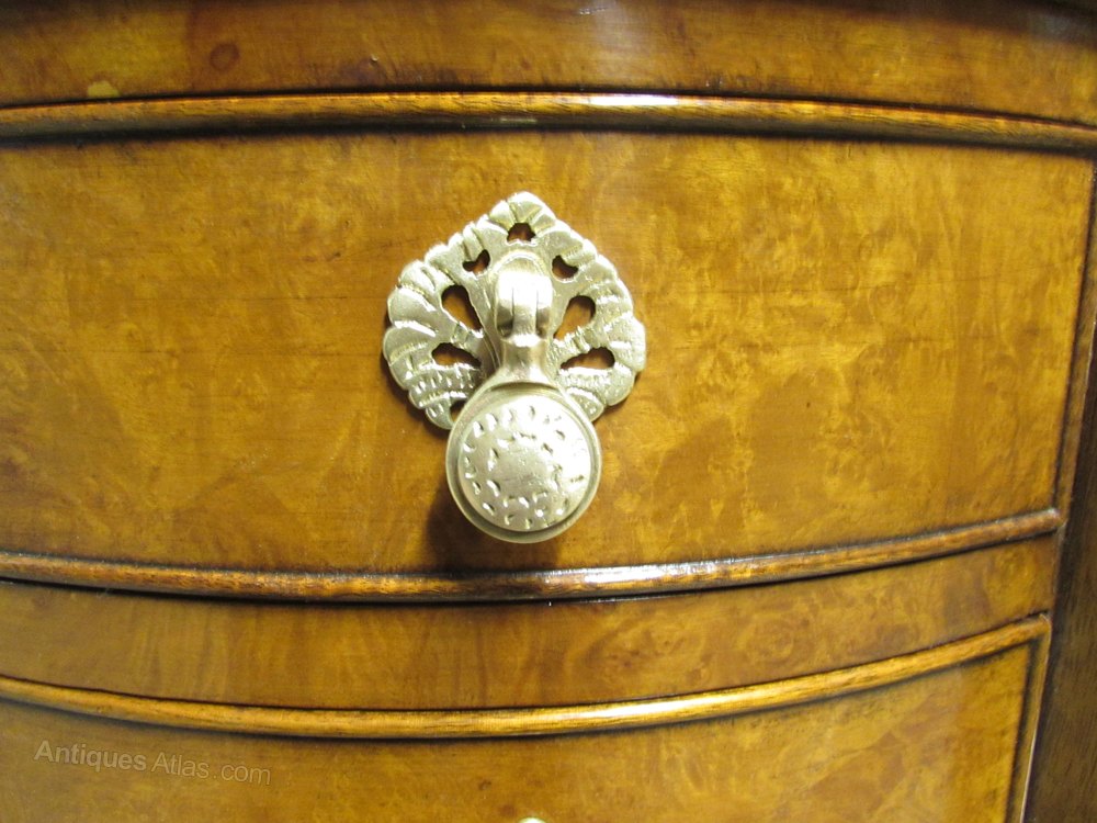 Inlaid mahogany bow front Sheraton style bedside cabinet