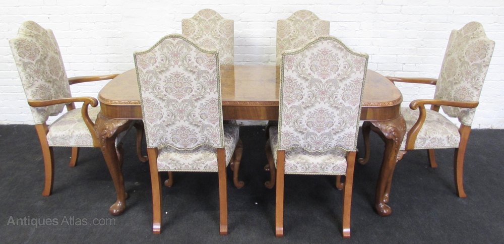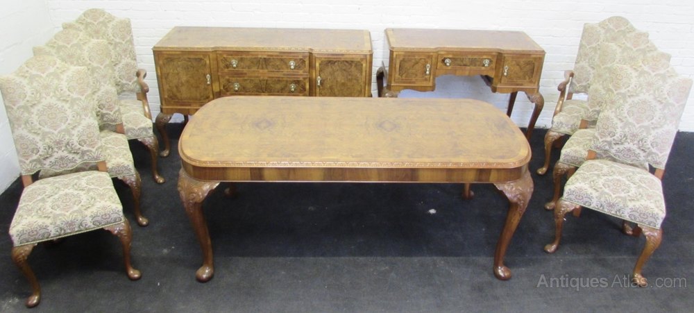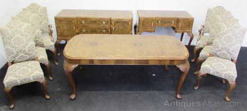 Burr Walnut Queen Anne Dining Suite