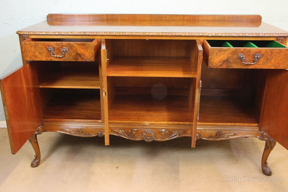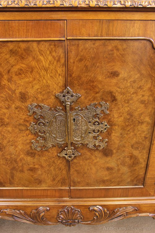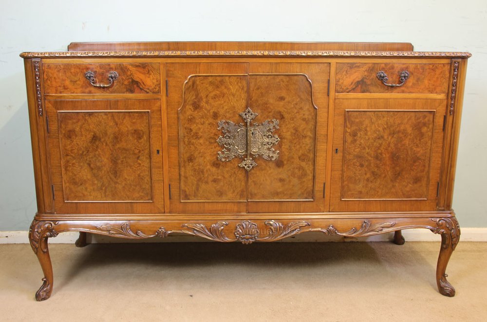 Burr Walnut Queen Anne Style Sideboard Server