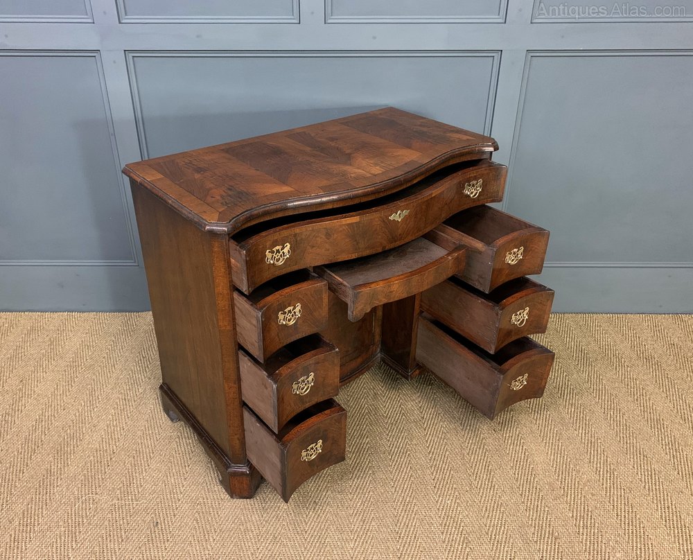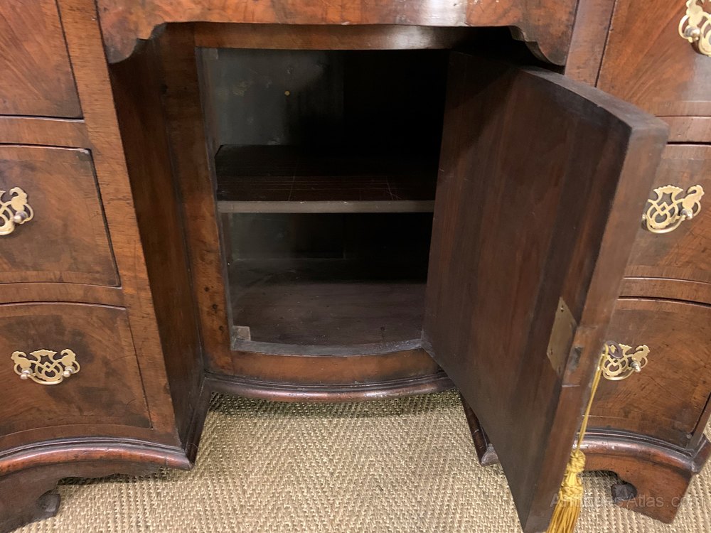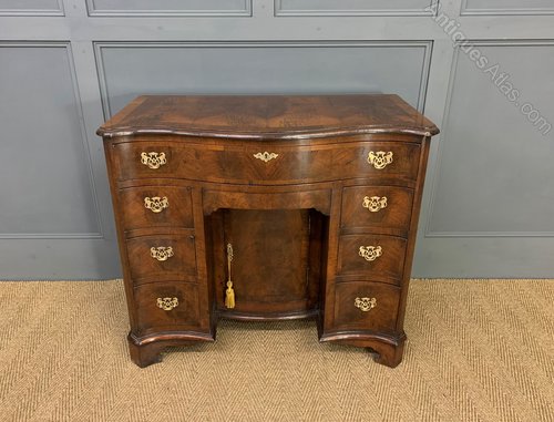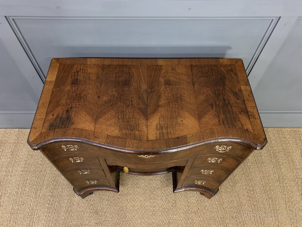 Burr Walnut Serpentine Fronted Knee Hole Desk