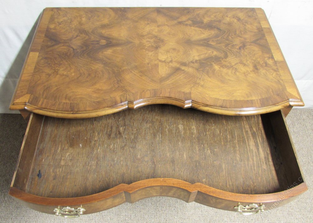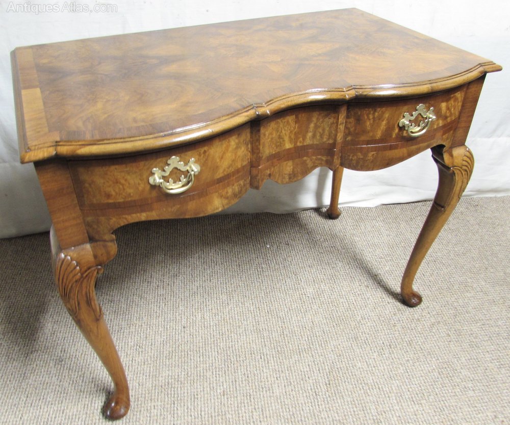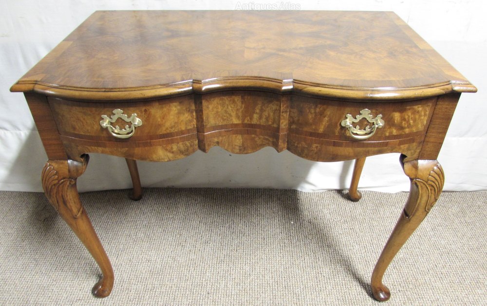 A lovely quality Side, Hall or Writing Table. Made from Walnut with Burr Walnut to the top and front. The single drawer is smoothly running and fitted with original handles. The top is cross banded and she sits on Queen Anne legs.