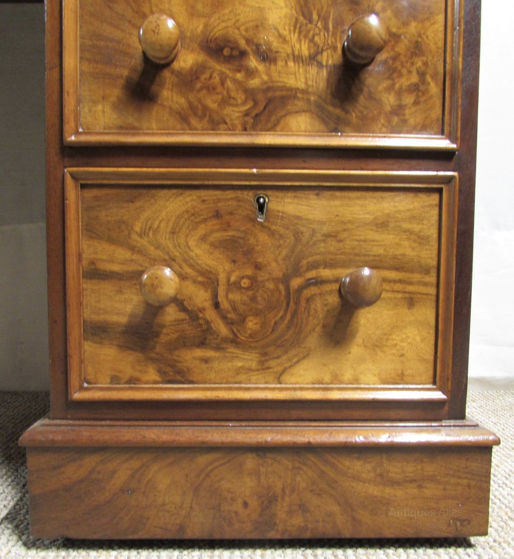 Burr Walnut Victorian Pedestal Desk