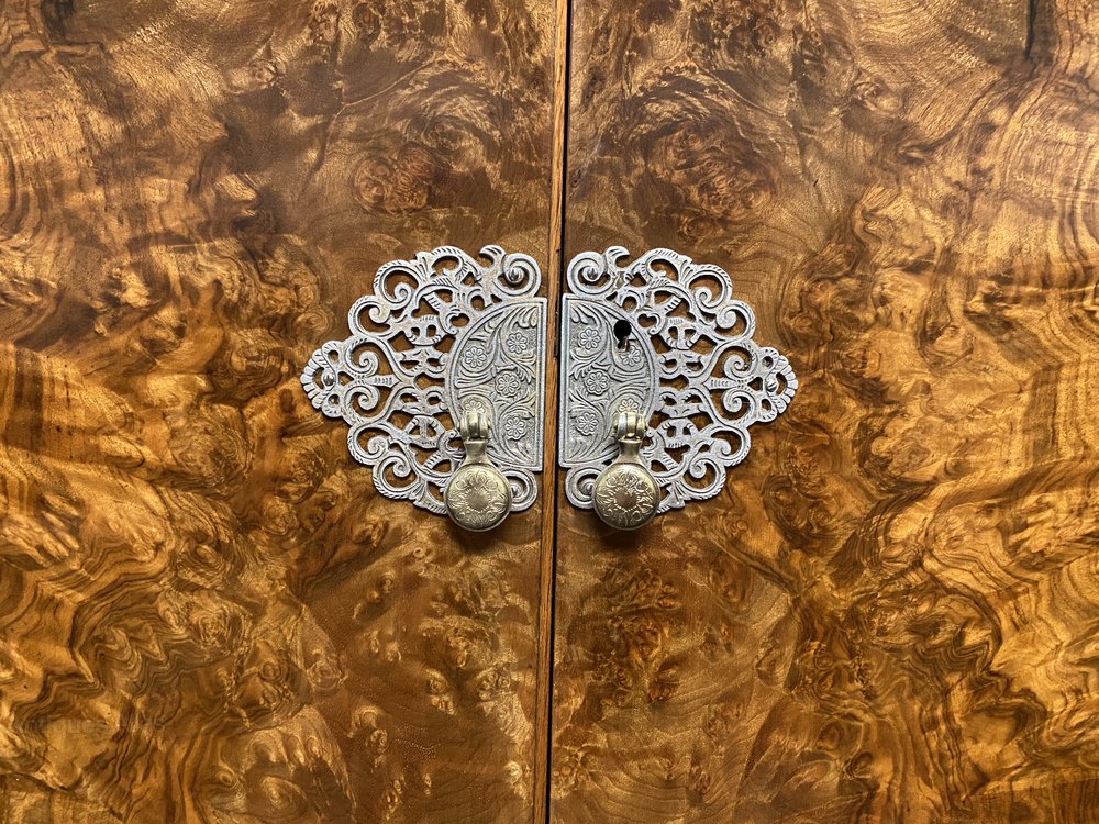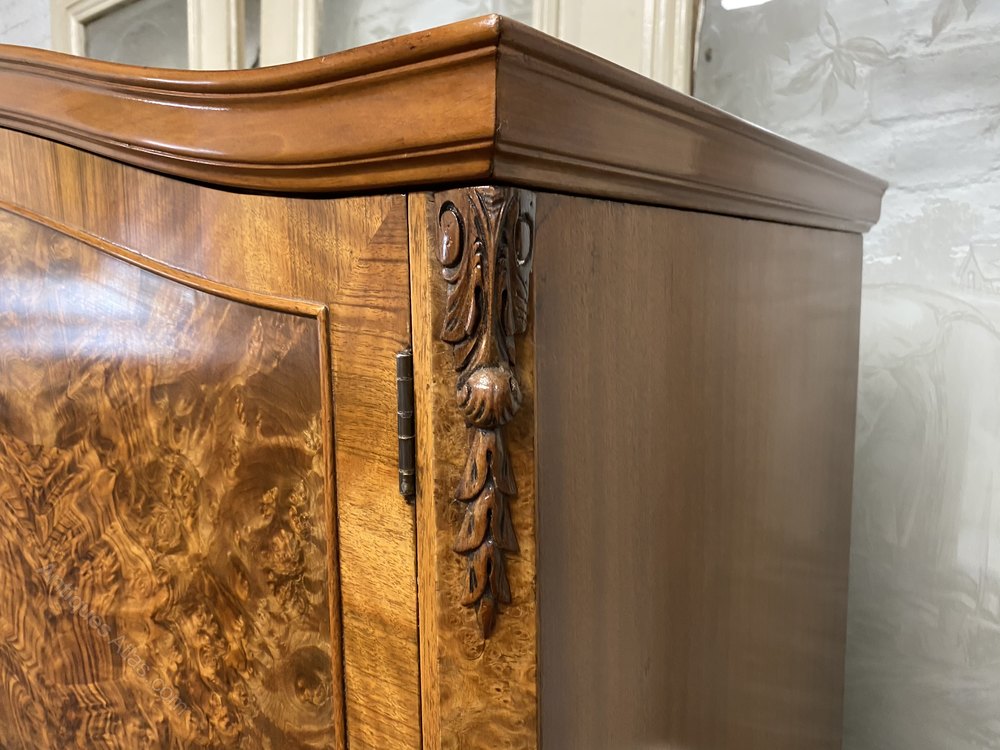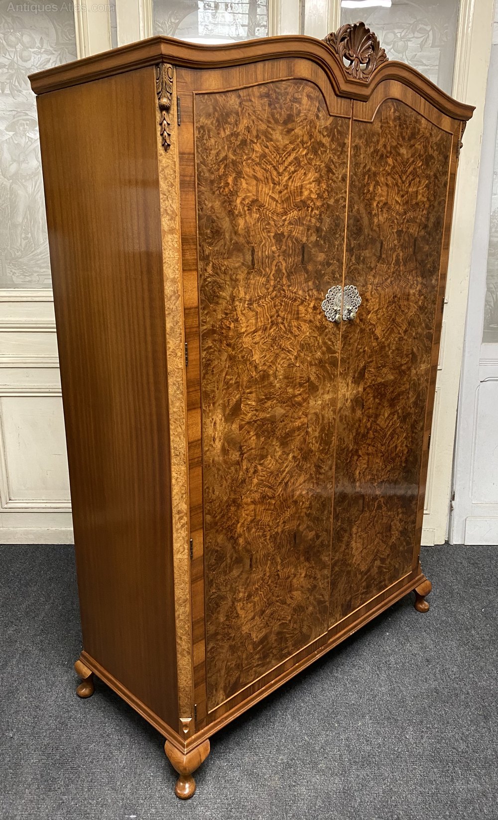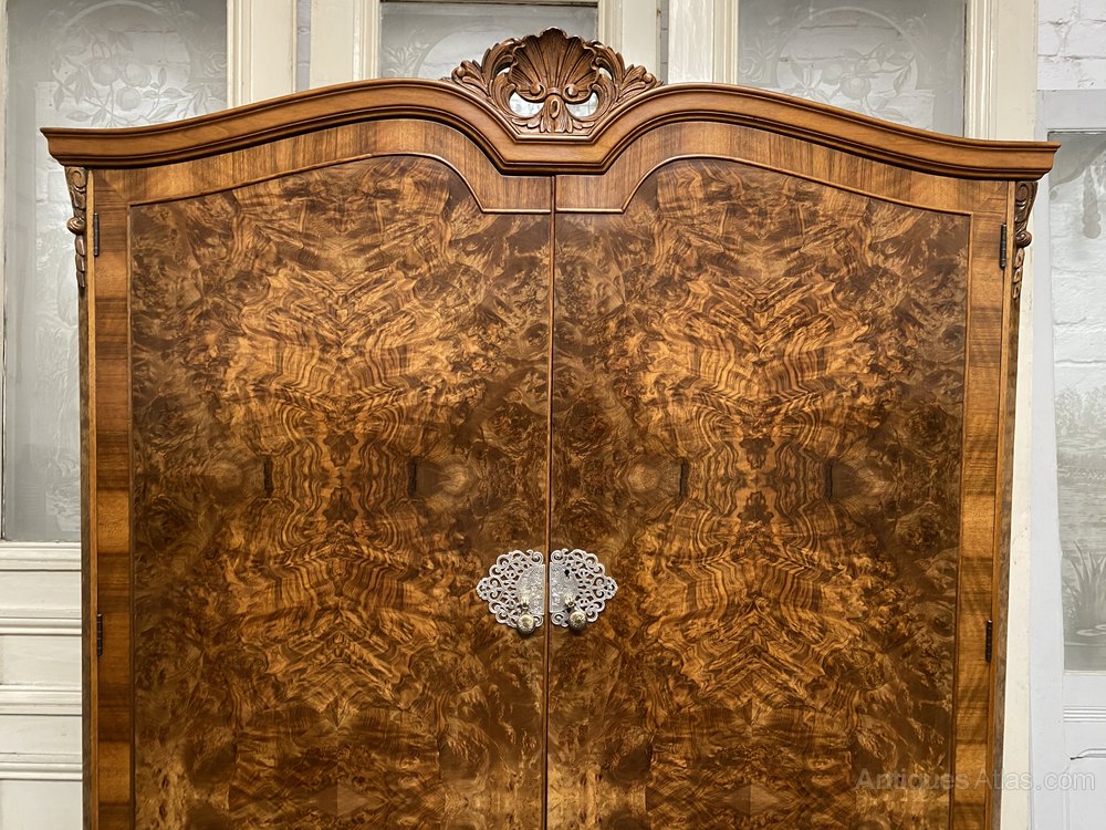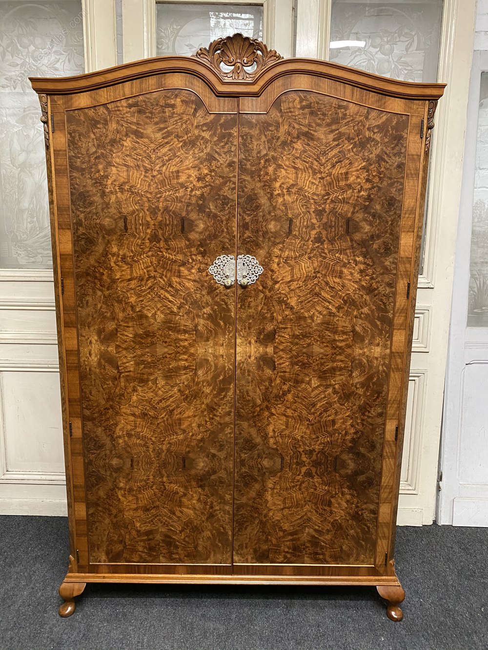A simply stunning 2 door Wardrobe, having the best Burr Walnut front I have seen in a long time. Nice original lock plate and she sits on Queen Anne Legs.