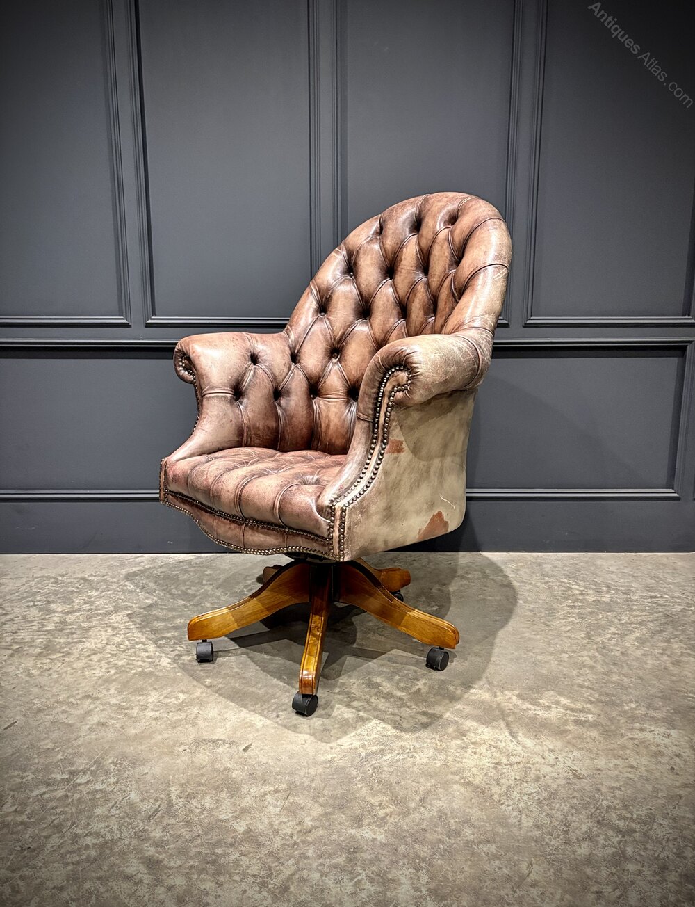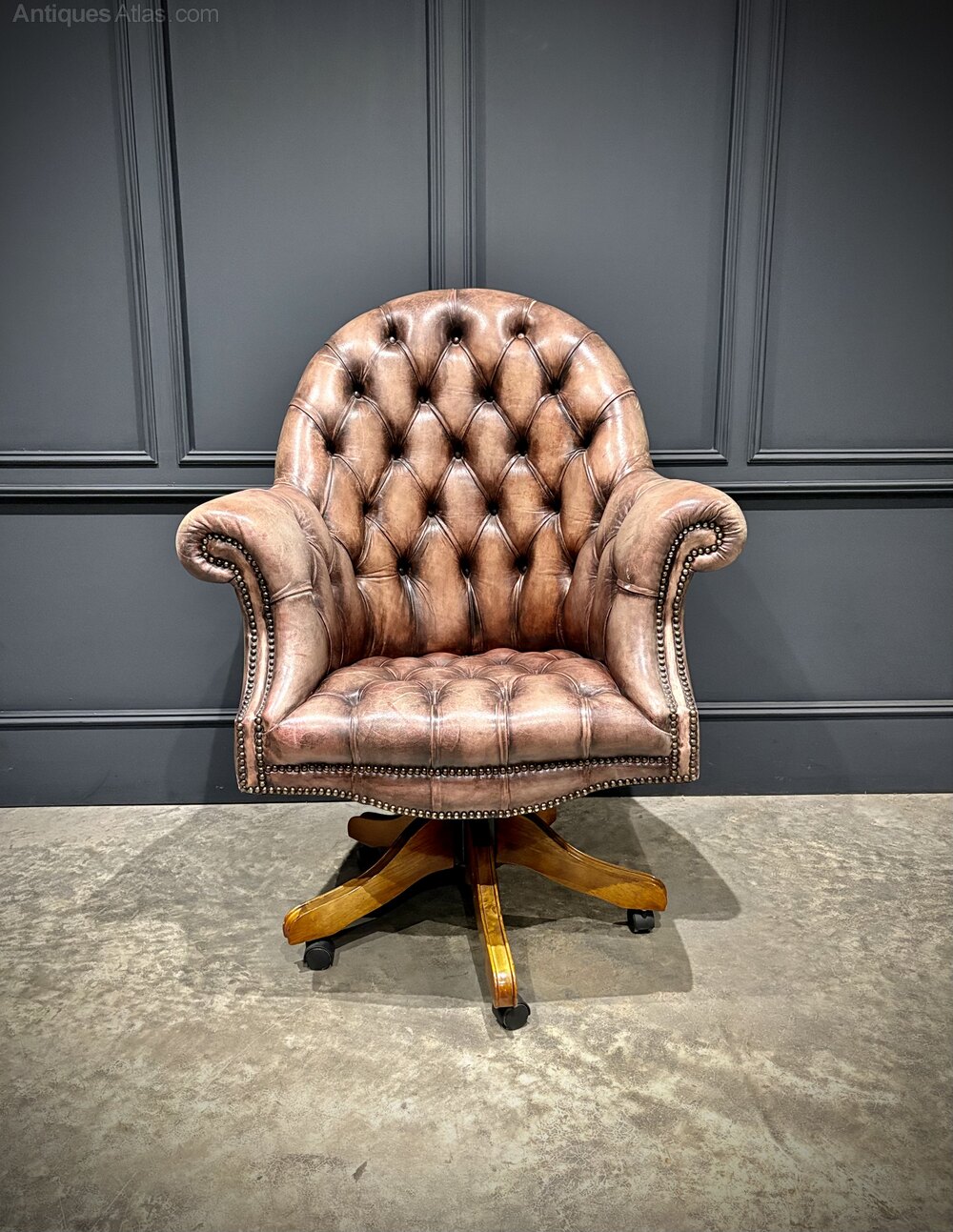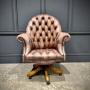 A superb leather swivel desk chair in the classic Chesterfield style, offering both comfort and timeless appeal.