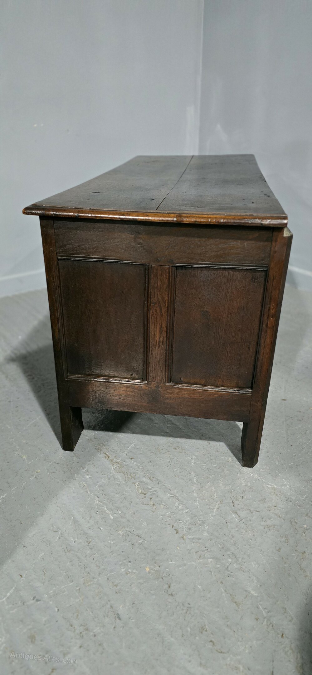A superb C17th, Charles 1 oak three panel coffer, with two plank top, original paper lining, original condition with working lock, super colour and condition.