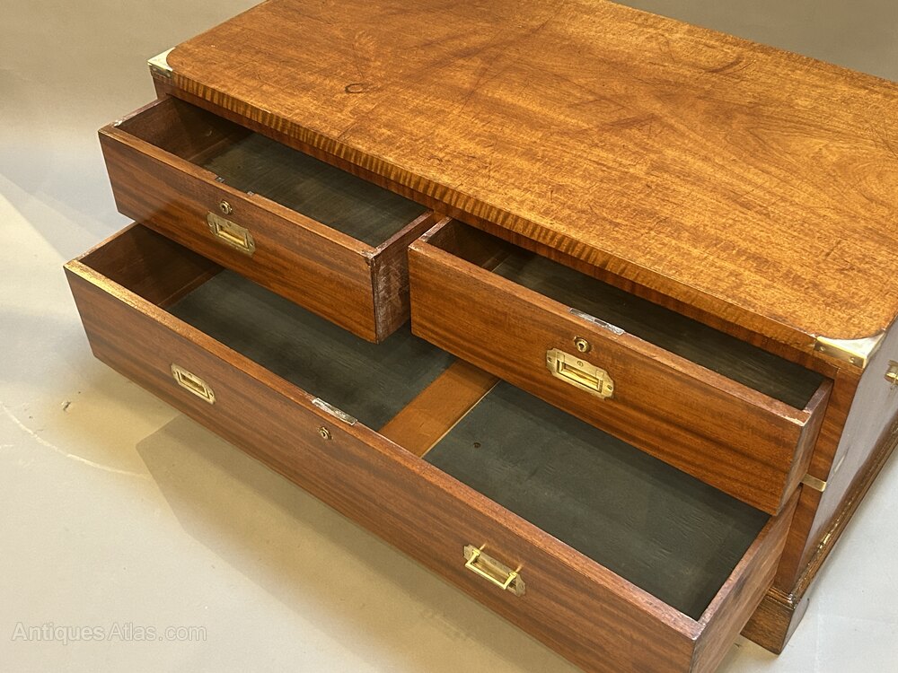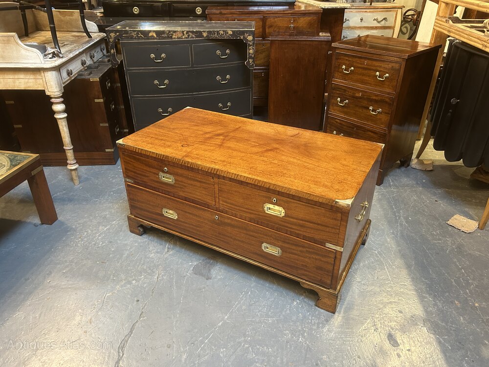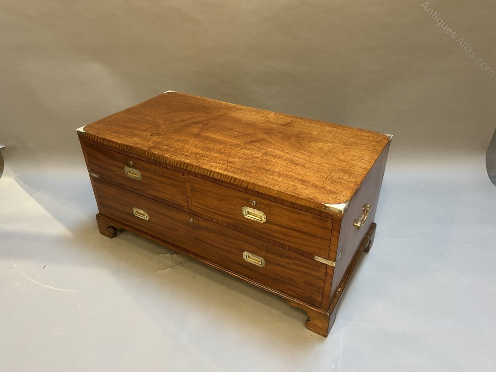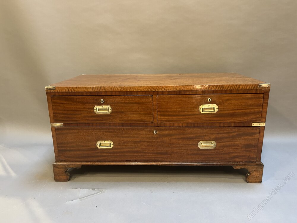 C19th Campaign Low Chest Of Drawers