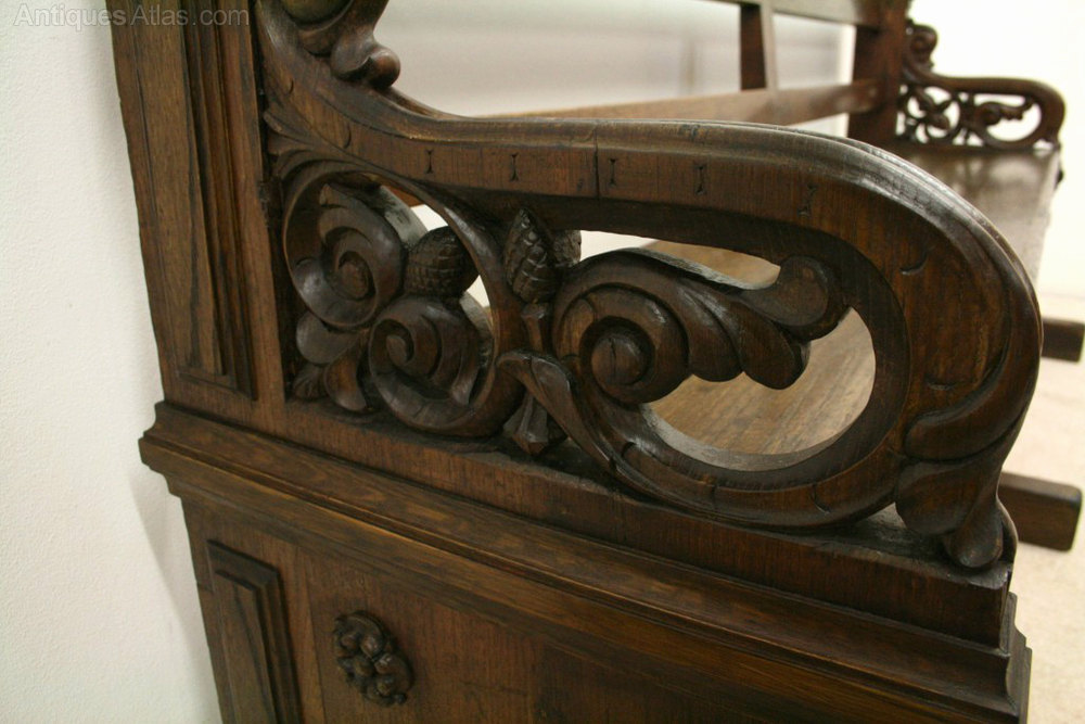 19th Century Heavily Carved Oak Bench