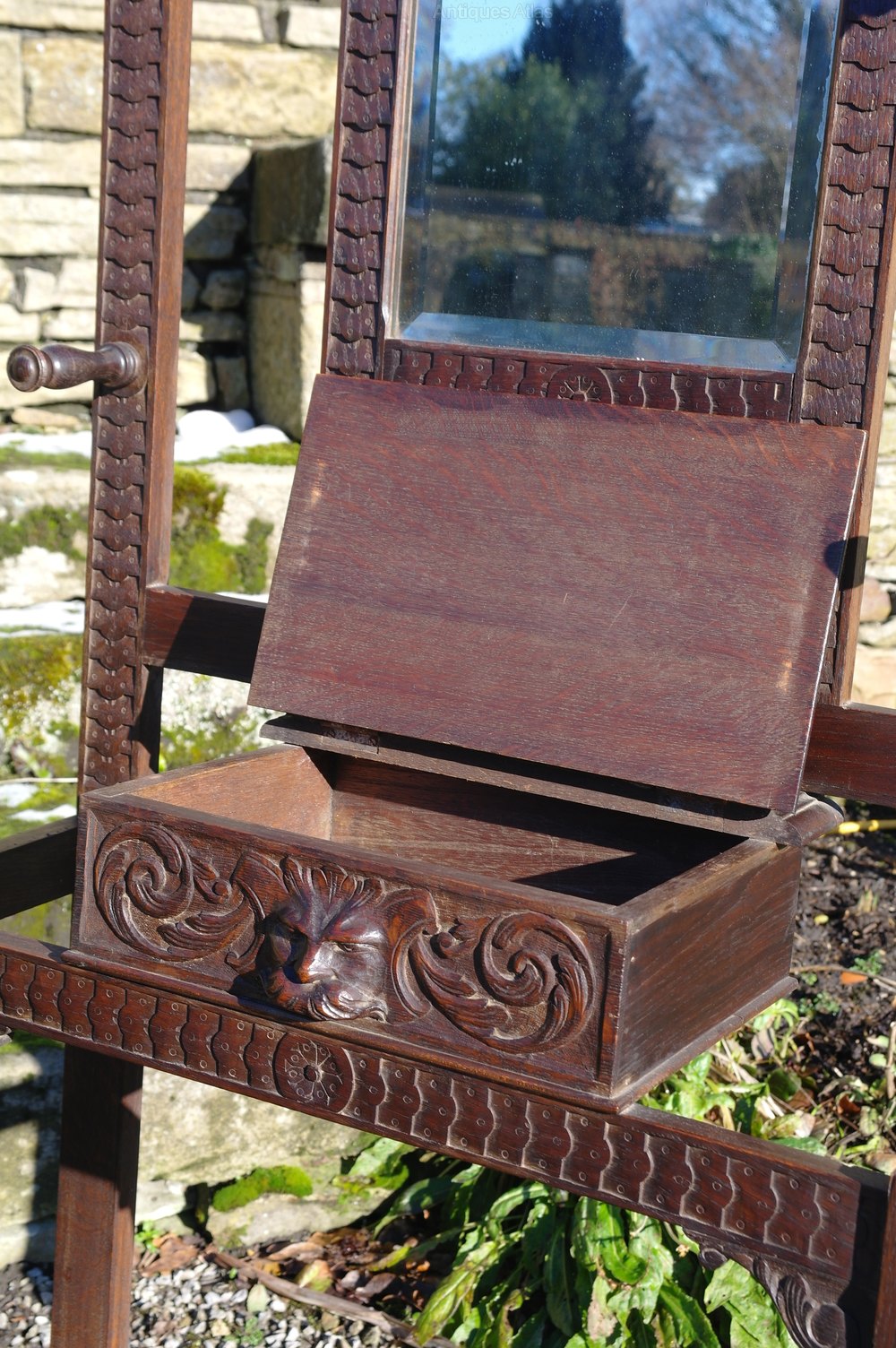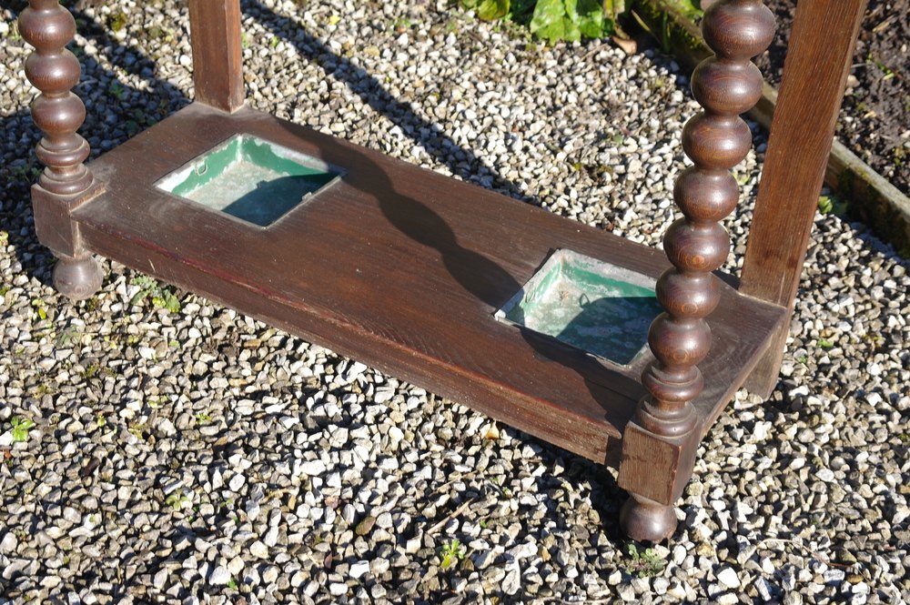 late victorian hall stand in good condition Central drawer with carved lions head handle and original drip trays