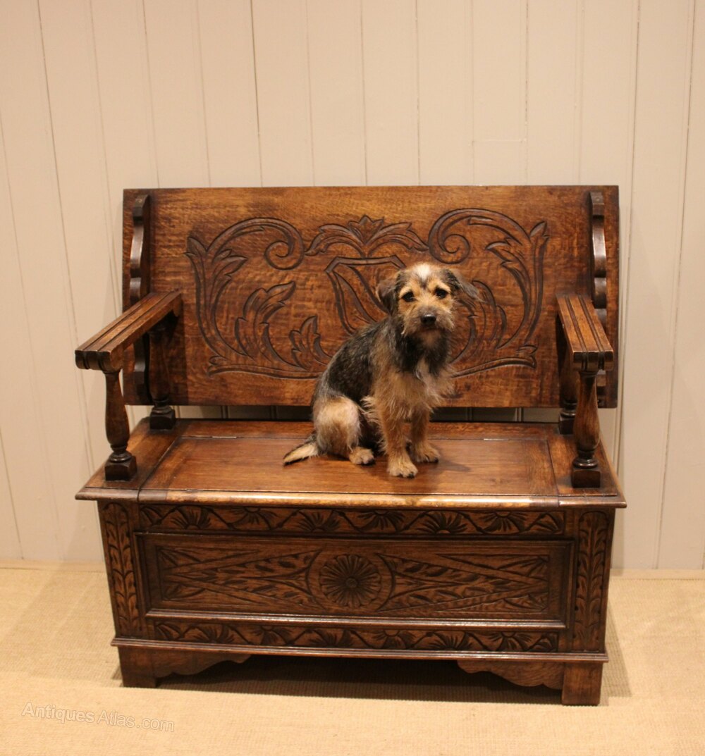 Irish Walnut Bench, Hall Seat with Shoe Storage