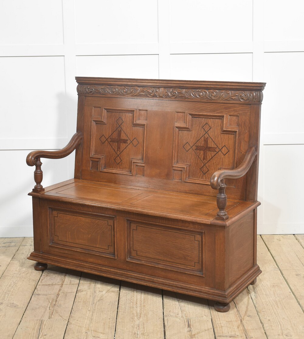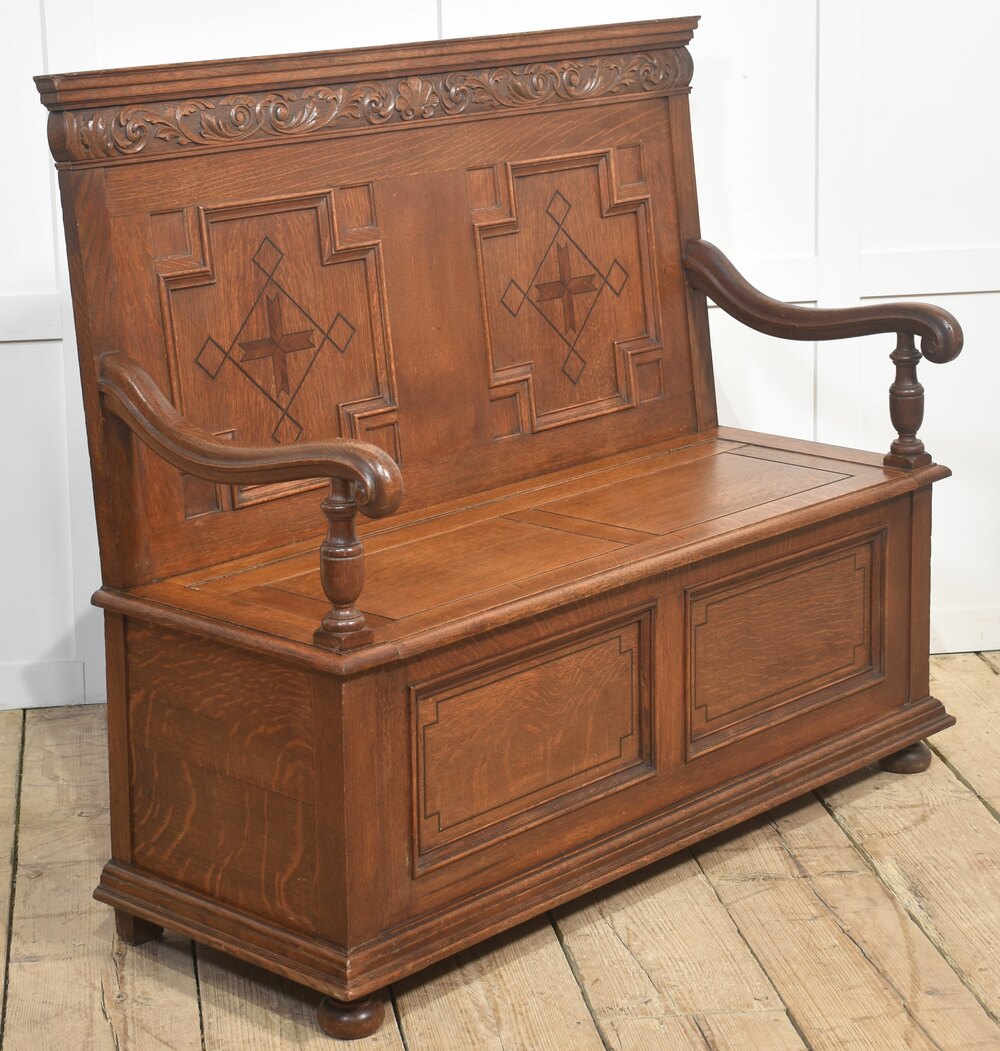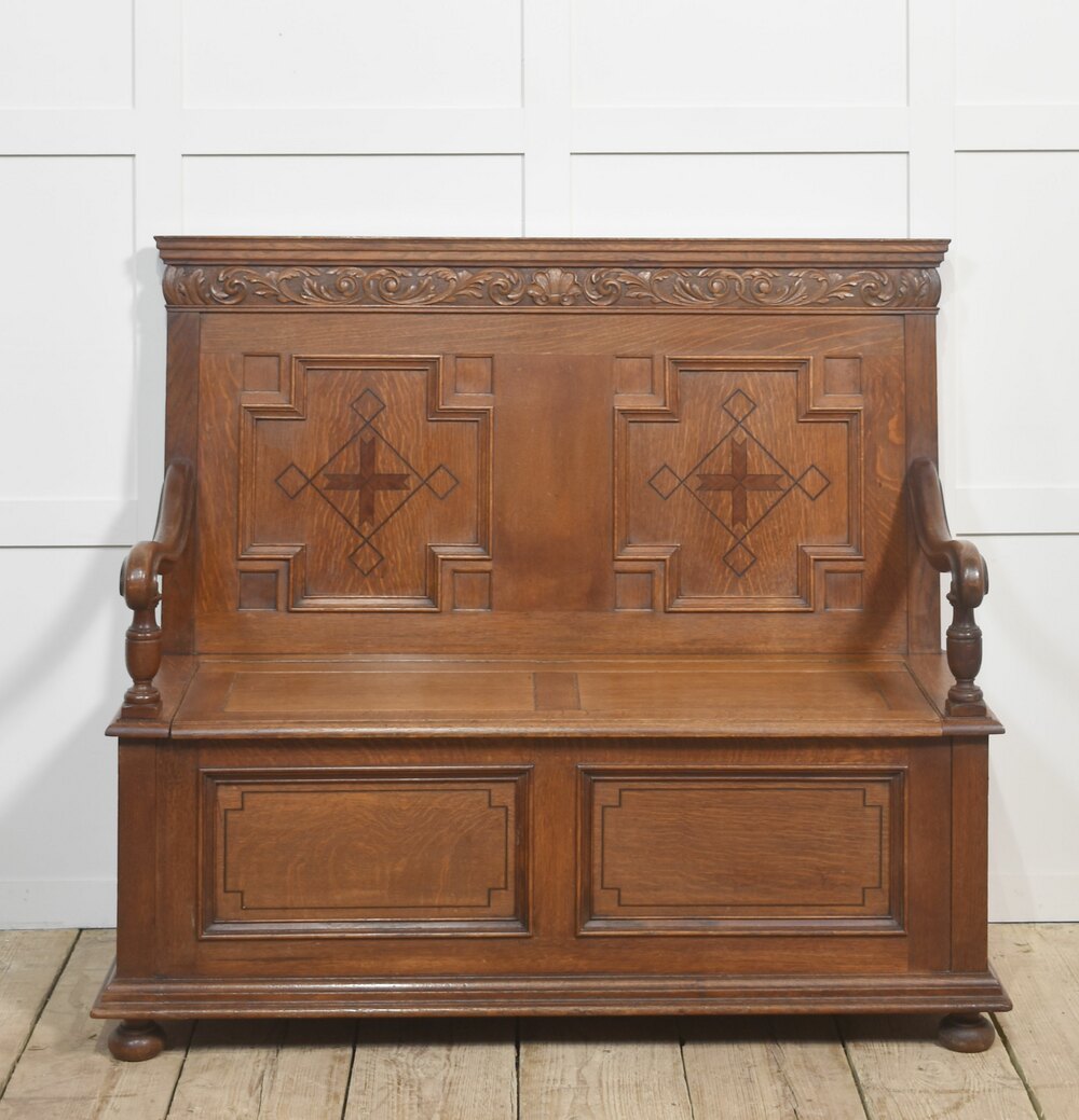 Circa 1860 Monks Oak Settle Bench Internal Storage