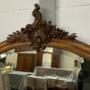 The mirror has ornate carved floral detailing to the top and carved detailing to the bottom.