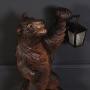 A charming Black Forest bear lamp, standing proudly on its hind legs, this finely detailed bear holds a wrought iron and glass lantern in one paw.