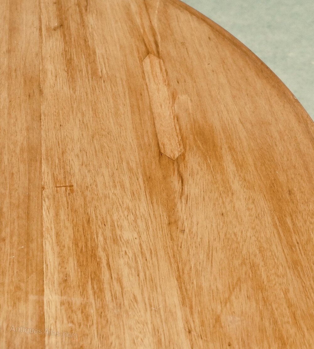 The table is in good condition for its age, it has a piece of wood let in on the top, this is original, it is 35” in diameter and 28” high in the horizontal position