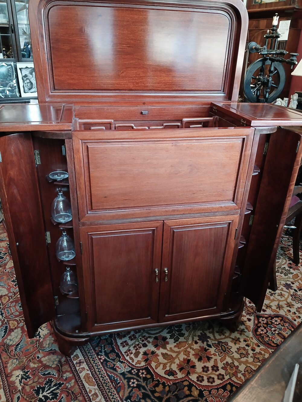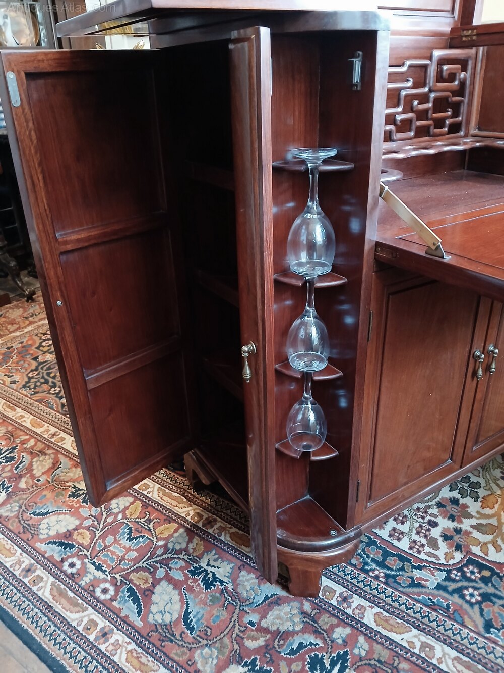 Chinese made Dry Bar we think in Rosewood. A Spectacular piece of Furniture really beautifully made with storage for Glasses, Bottles, decanters etc. Bought new by a British RAF officer whilst stationed in Hong Kong and brought back to the uk just prior to the handing back of Hong Kong to China in 1997. This piece is in fabulous condition