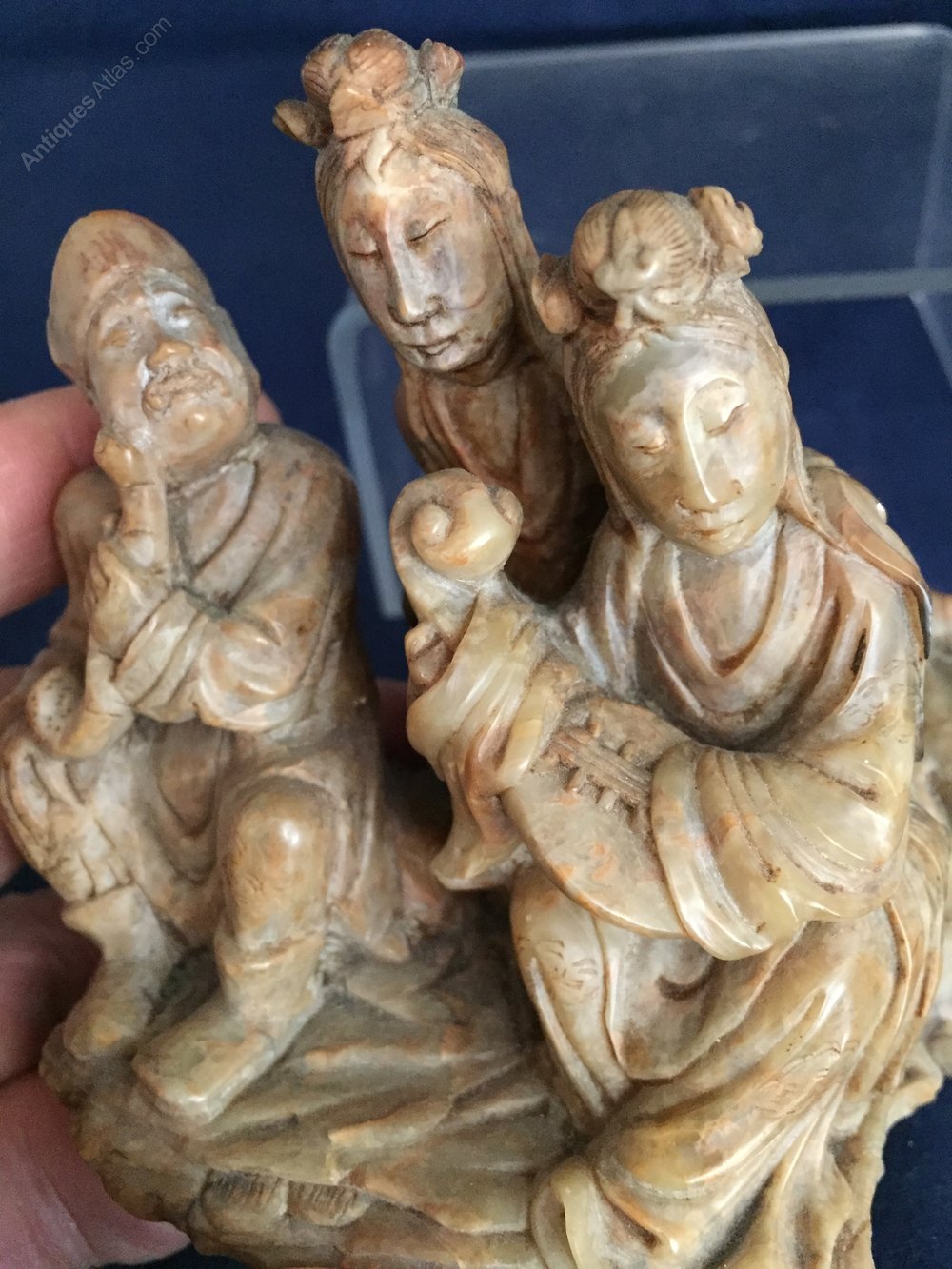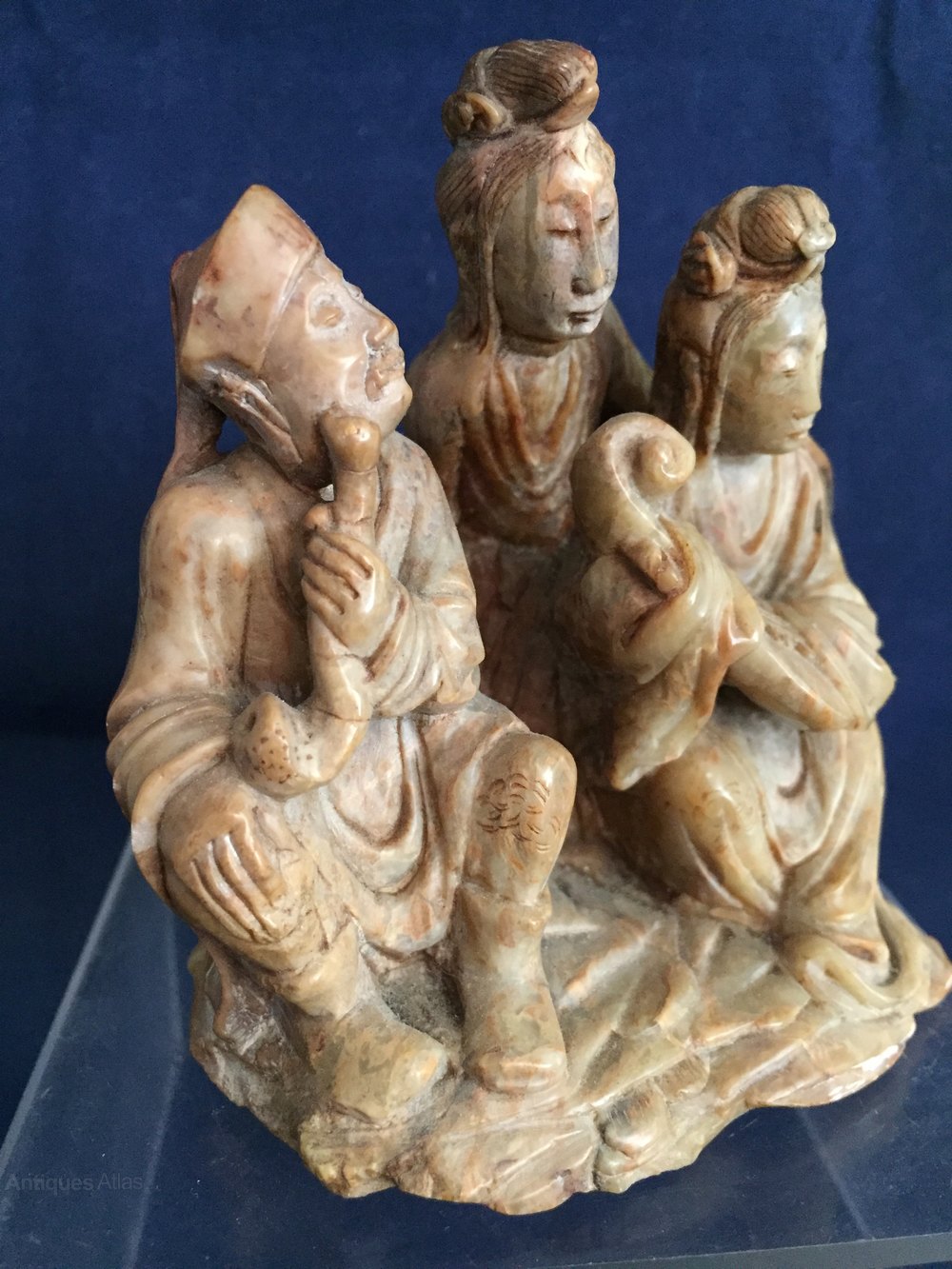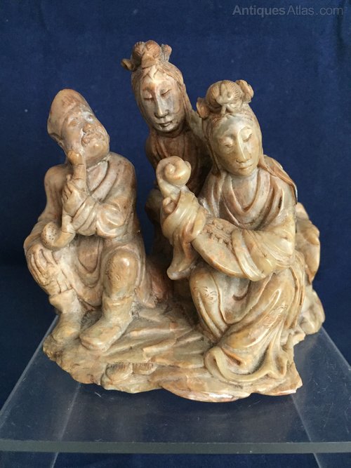 A finely carved chinese soapstone figure group of musicians.