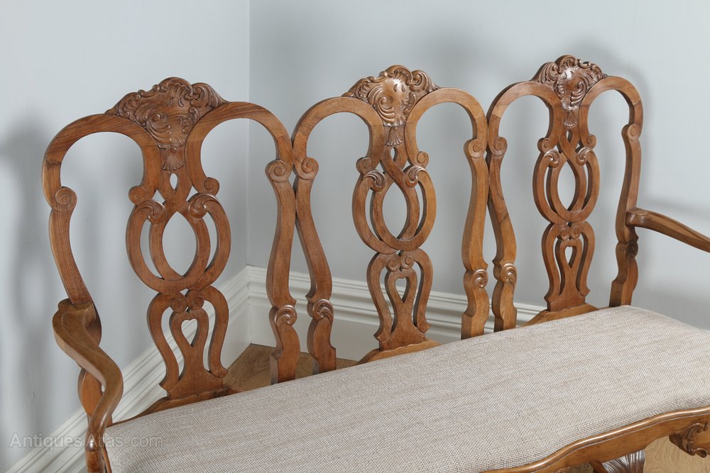 Chippendale Style Walnut Upholstered Settle Couch