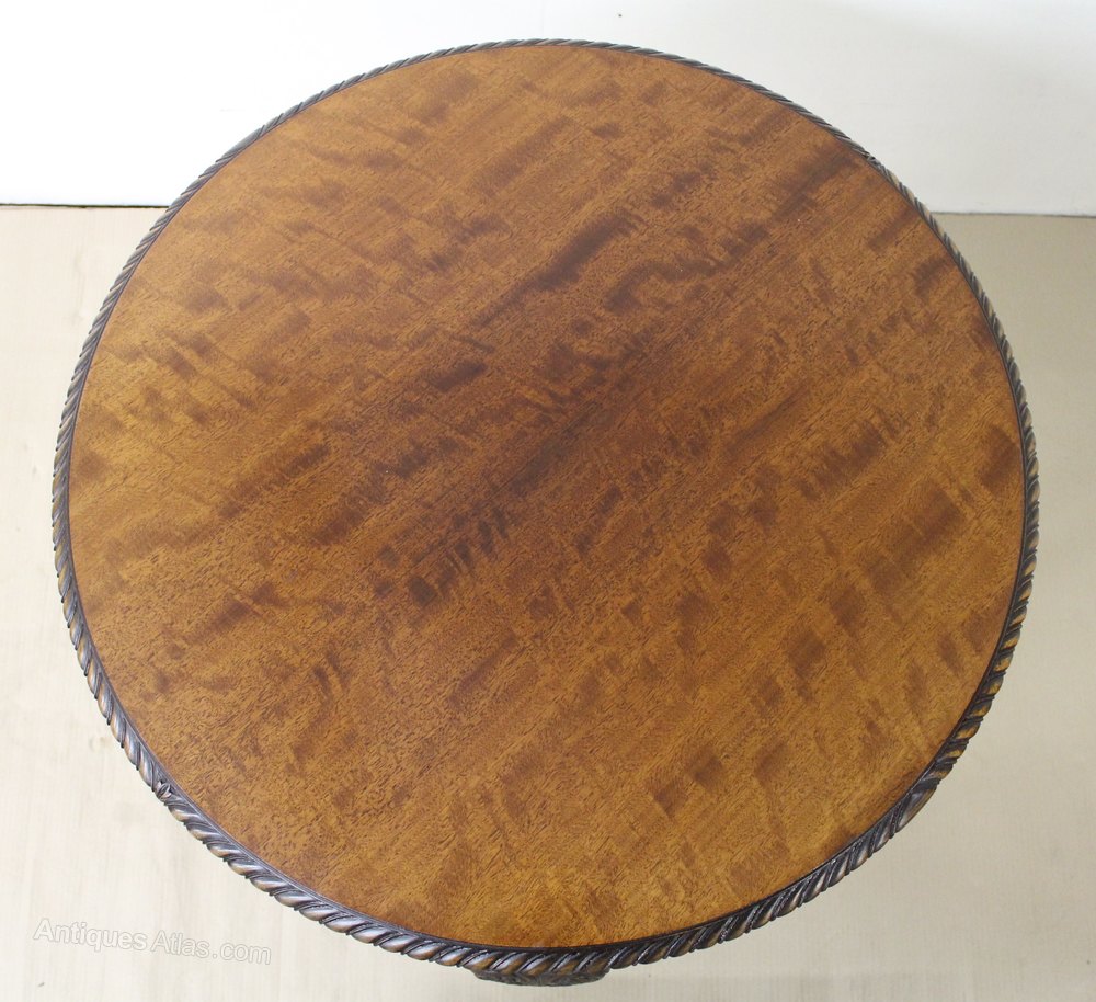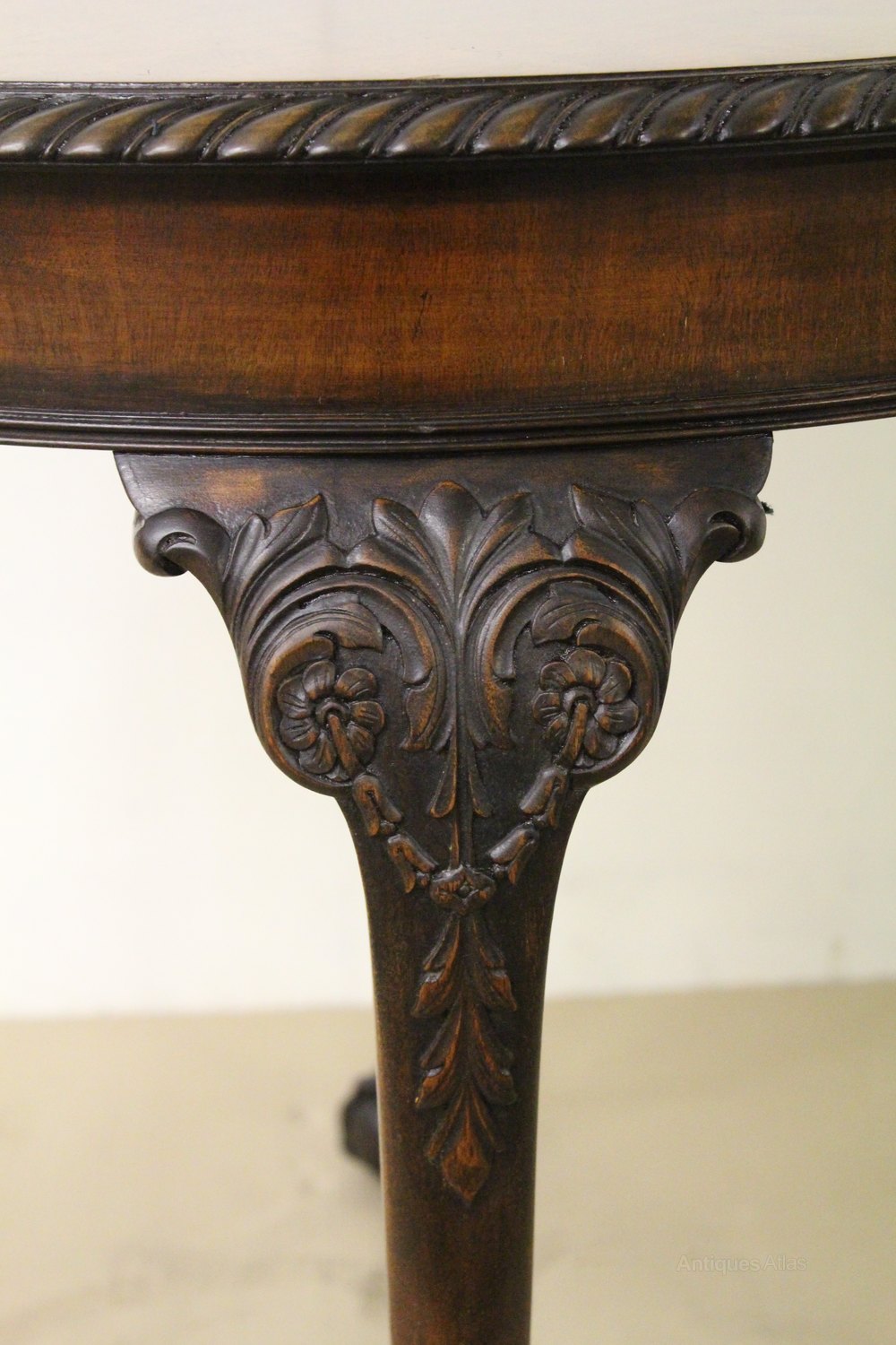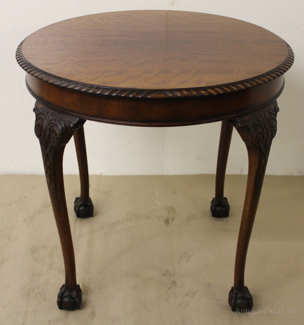 A good quality round mahogany centre table in the Chippendale style. Well made from attractive solid mahogany timber, now with a nice colour and patina. The circular top is surrounded by a gadrooned edge. The table stands on elegant cabriole legs with crisply carved detailing to the knees and terminating in characteristic ball and claw feet. This useful table is offered for sale in excellent original condition, ready to go straight into the home.