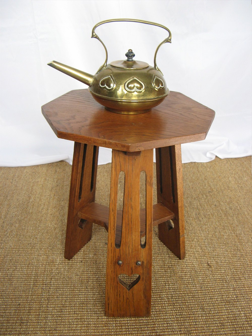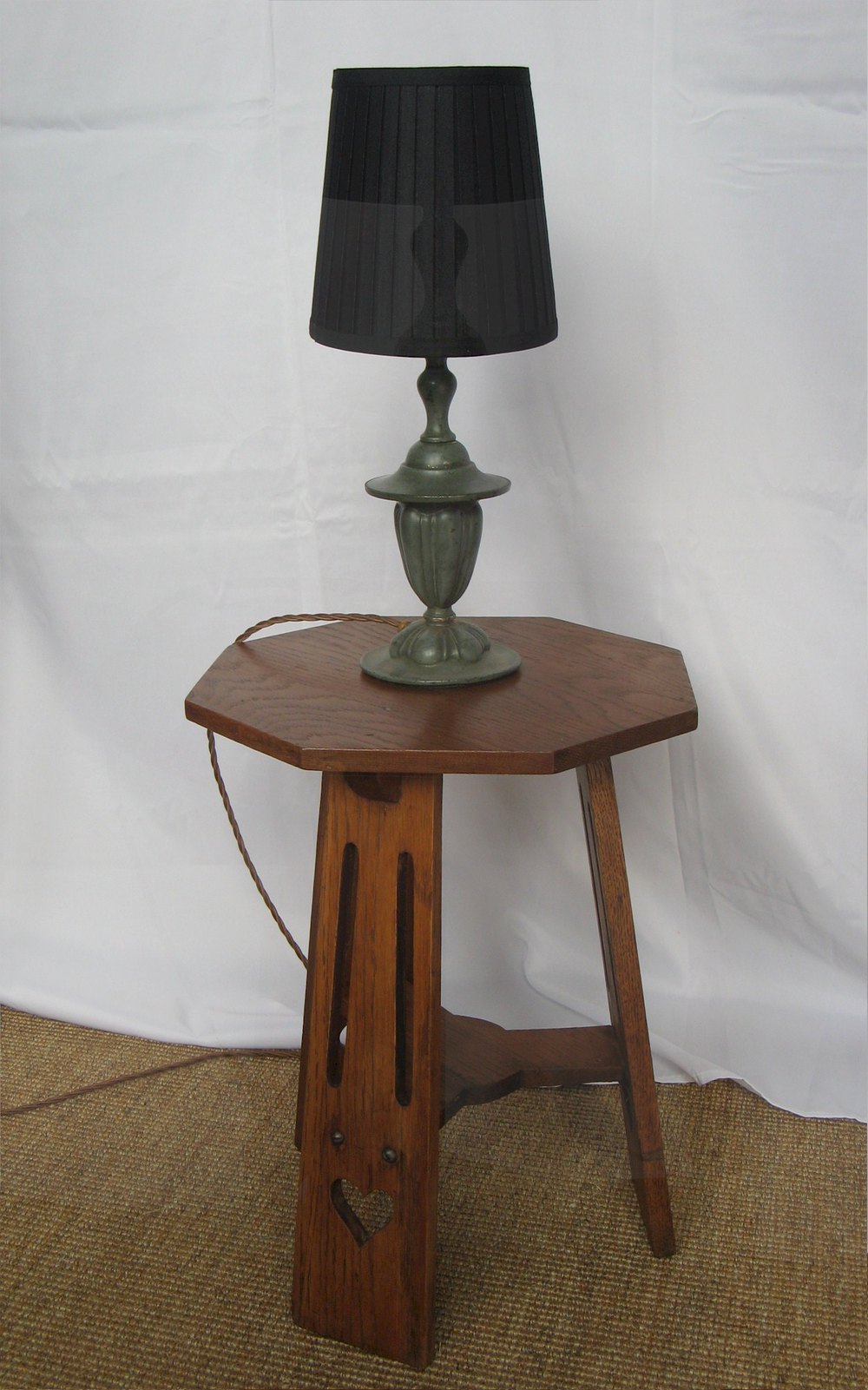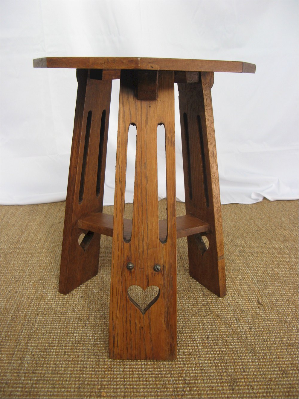 Classic arts and crafts small table in oak measures 16 in high x 12 in sq