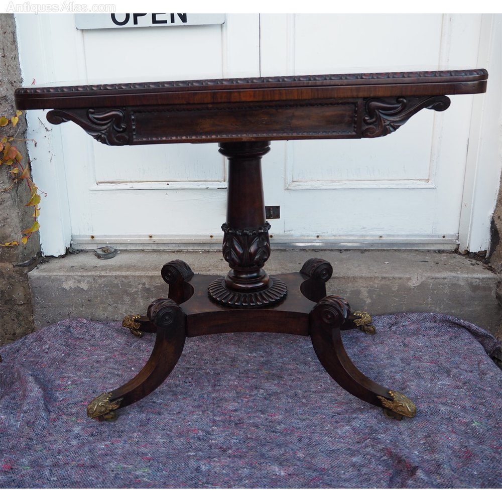 Regency period carved rosewood card table