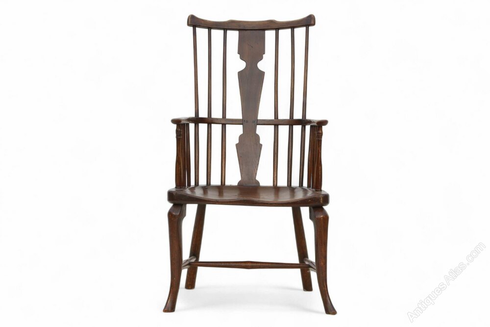 Antique Quality Yew Wood Broad Arm Windsor Chair