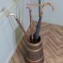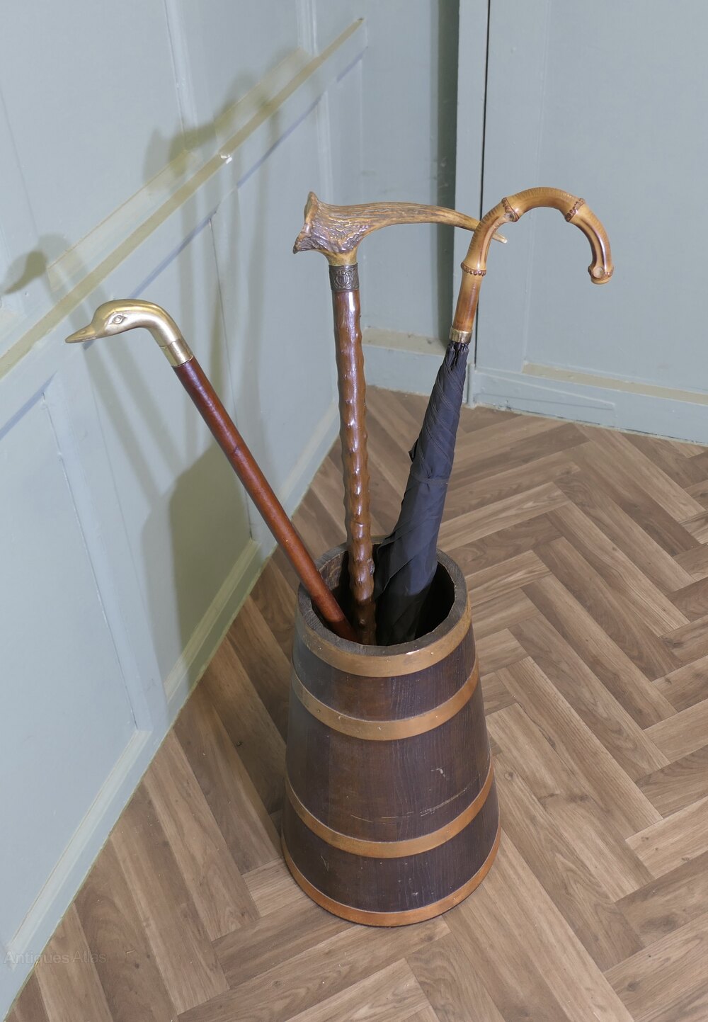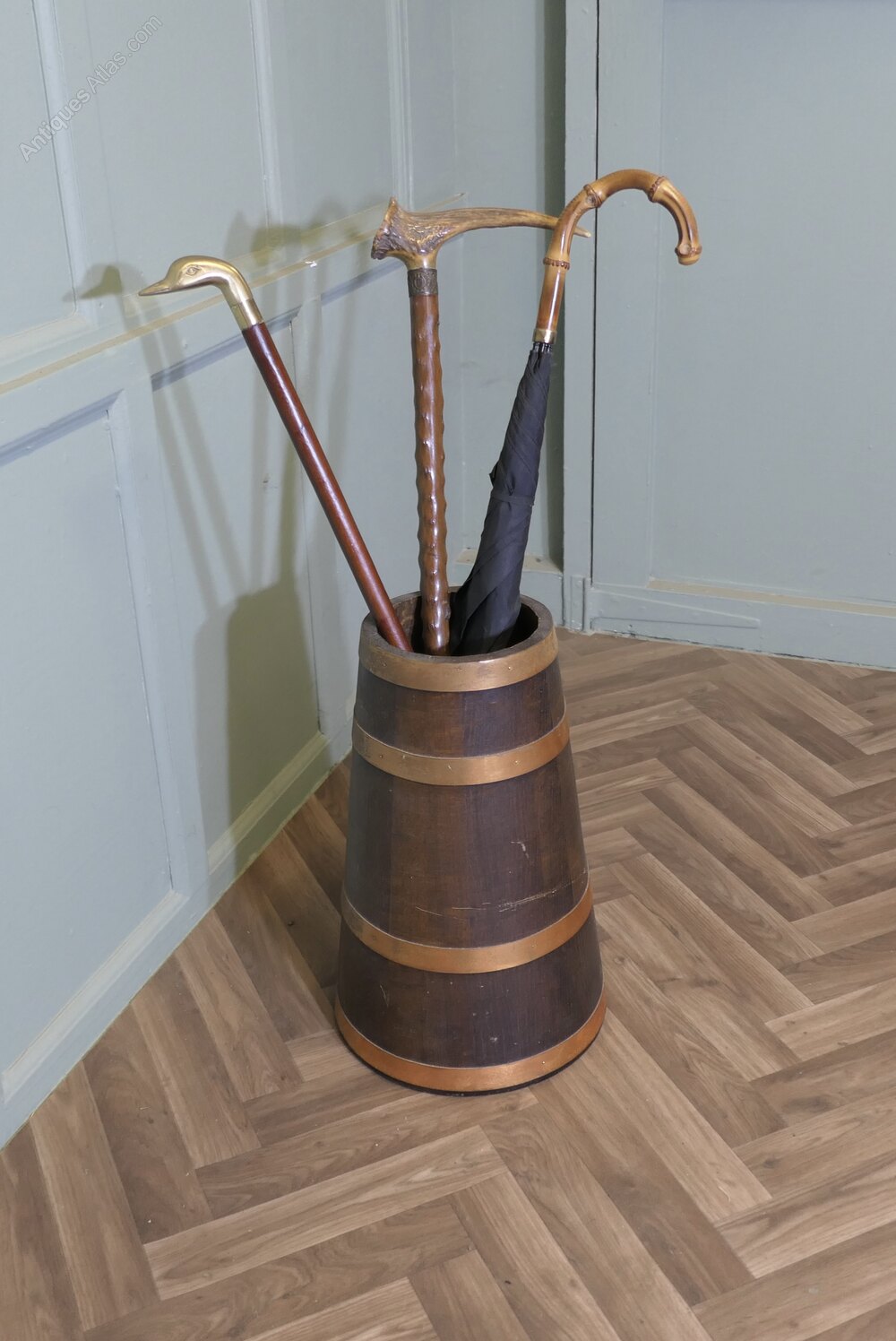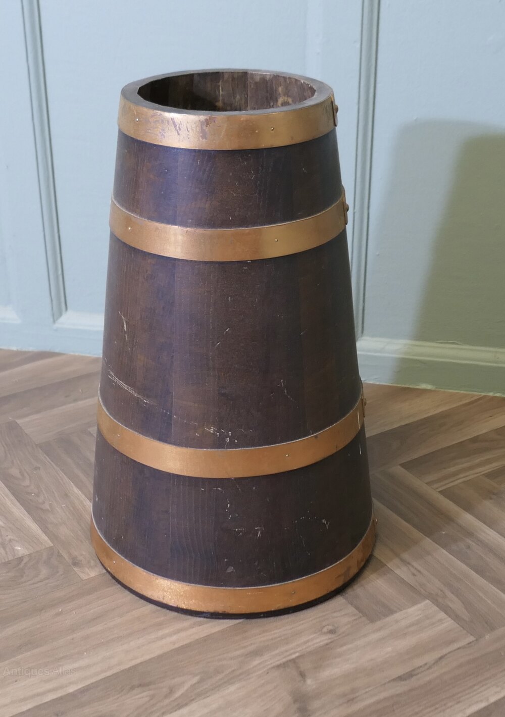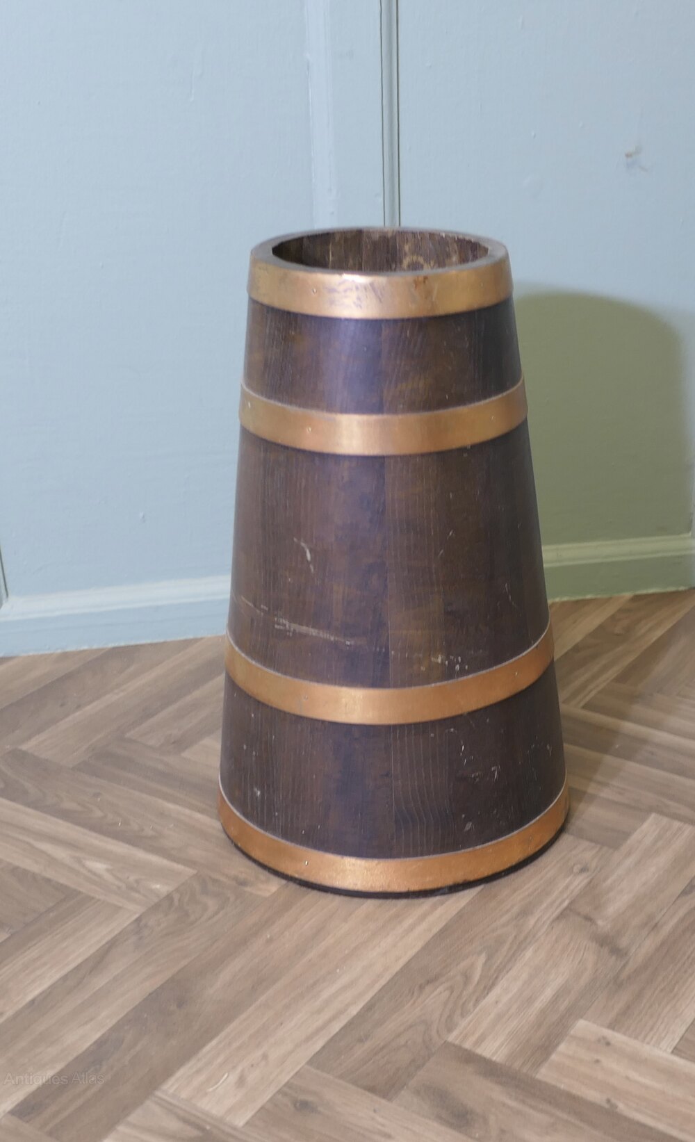 This good looking piece is cone shaped and heavy at the bottom so very sturdy, it is made with oak staves and bound with 4 wide copper hoops