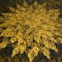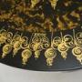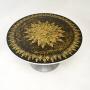 The circular top has beautiful patterns and colours, it stands on a steel splayed tulip shaped base.