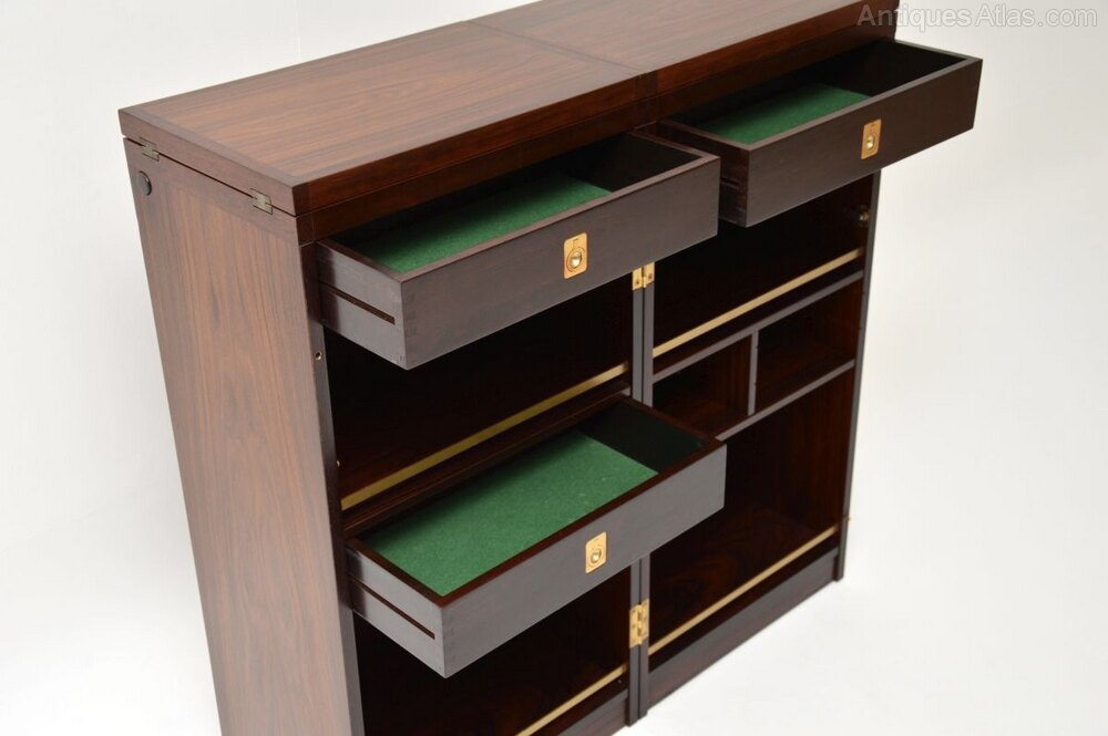 This is of amazing quality, it has an incredibly stylish and practical design. It unfolds from a simple box cabinet to a wonderful serving bar with many amazing features. This comes with a locking key, we have had it fully stripped and re-polished to a very high standard, the condition is superb throughout.