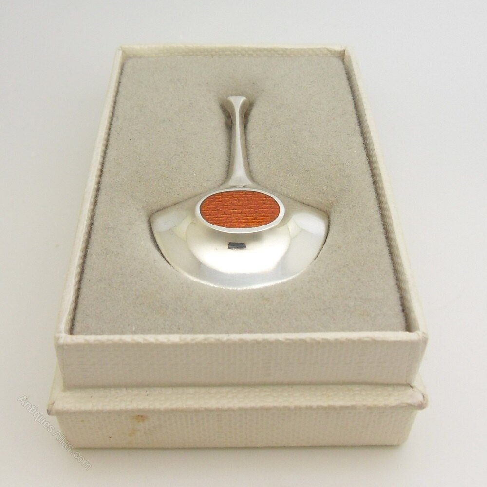A super vintage David Anderson pendant with the most stunning vivid orange enamel in oval form.