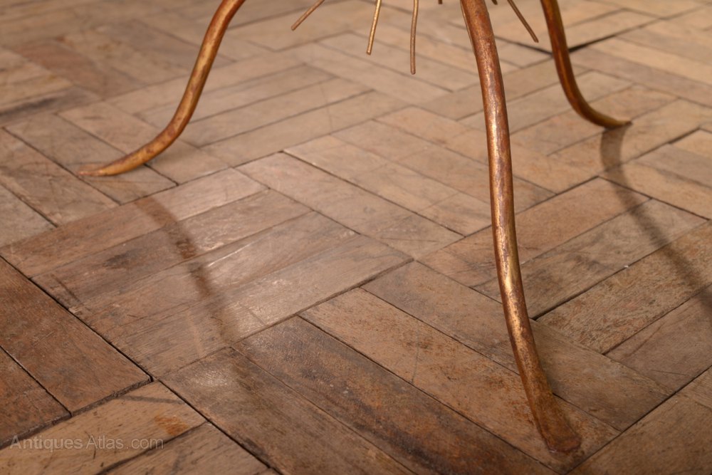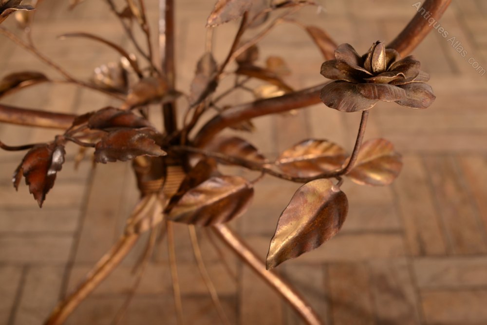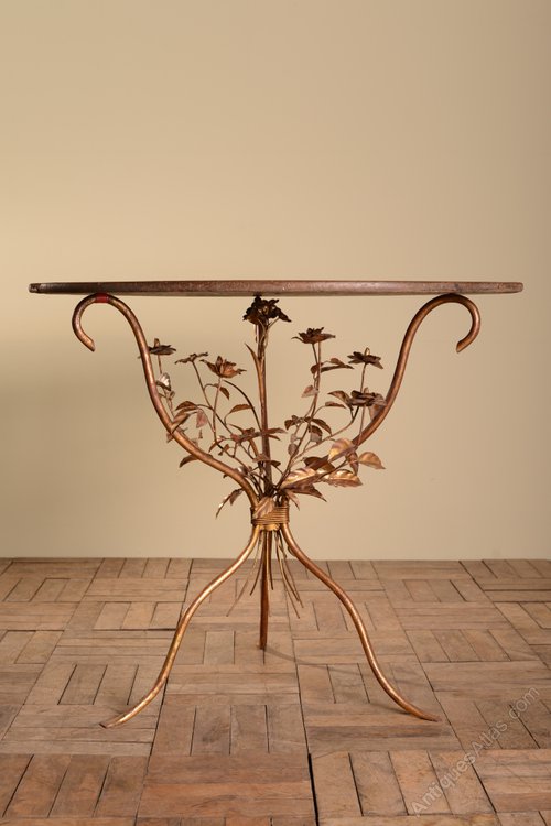 This is a good large unusual wirework table, the base has delicate, metal foliage which is in the original gilt finish.