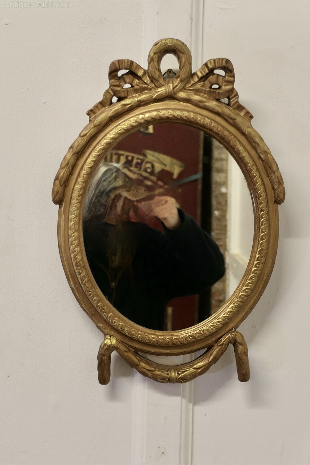LouisXVI Style Gilt Ribbon and Bow Mirror Oval