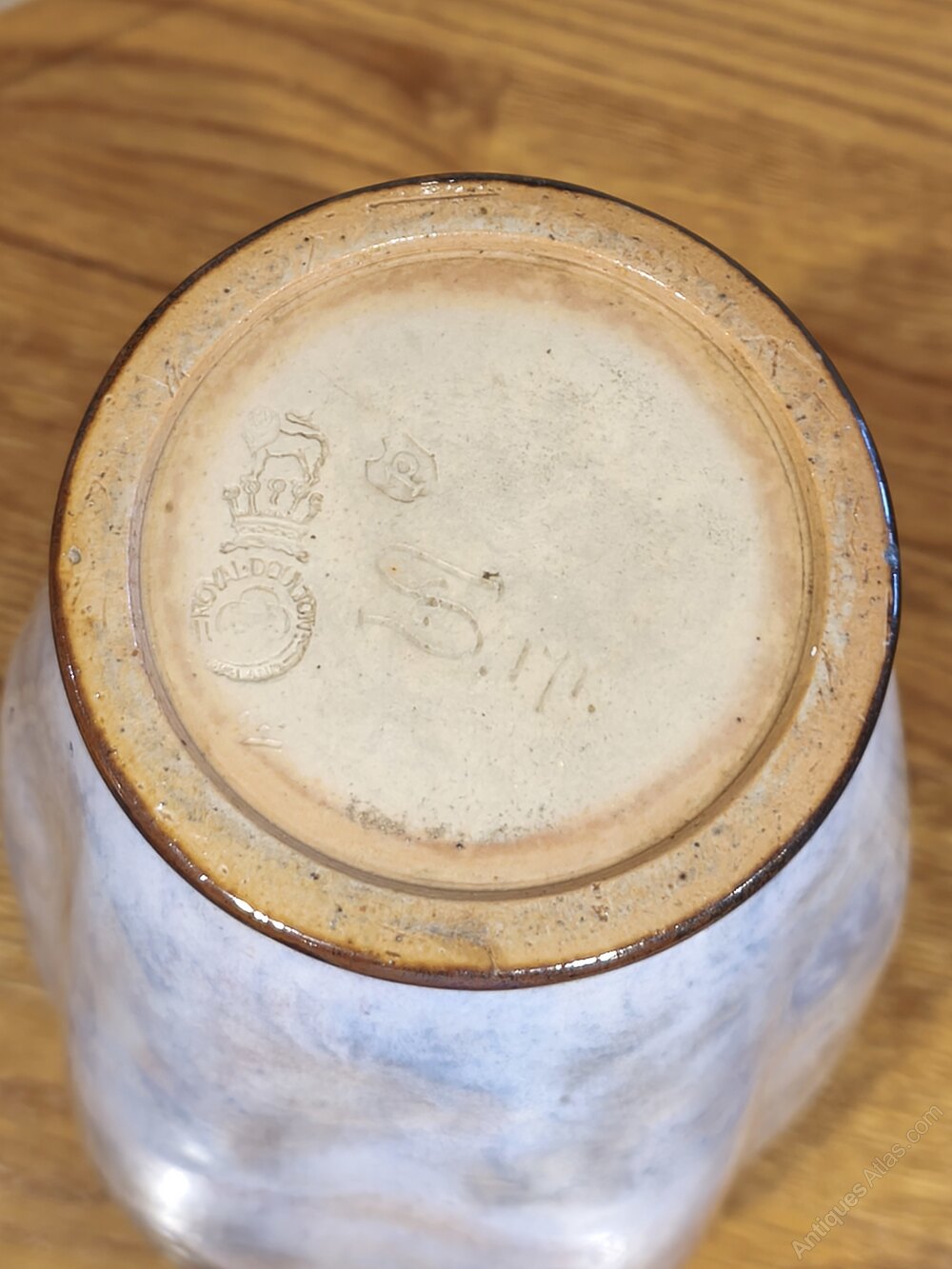 Stands 10" x 4 1/2" dia. Stamped Royal Doulton mark with date shield "p". Incised artist mark for Simmance "ES 171".
