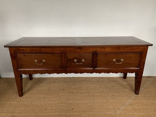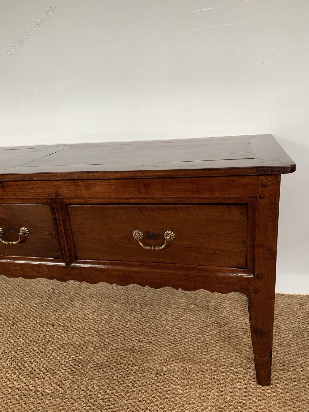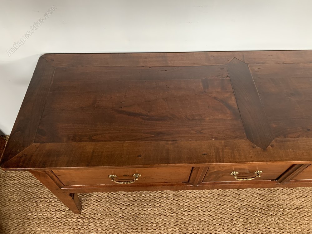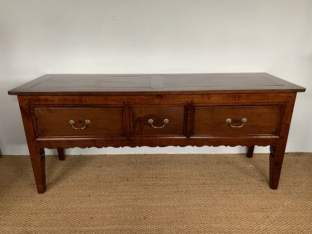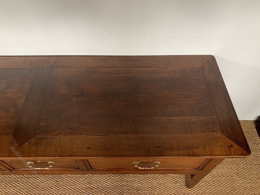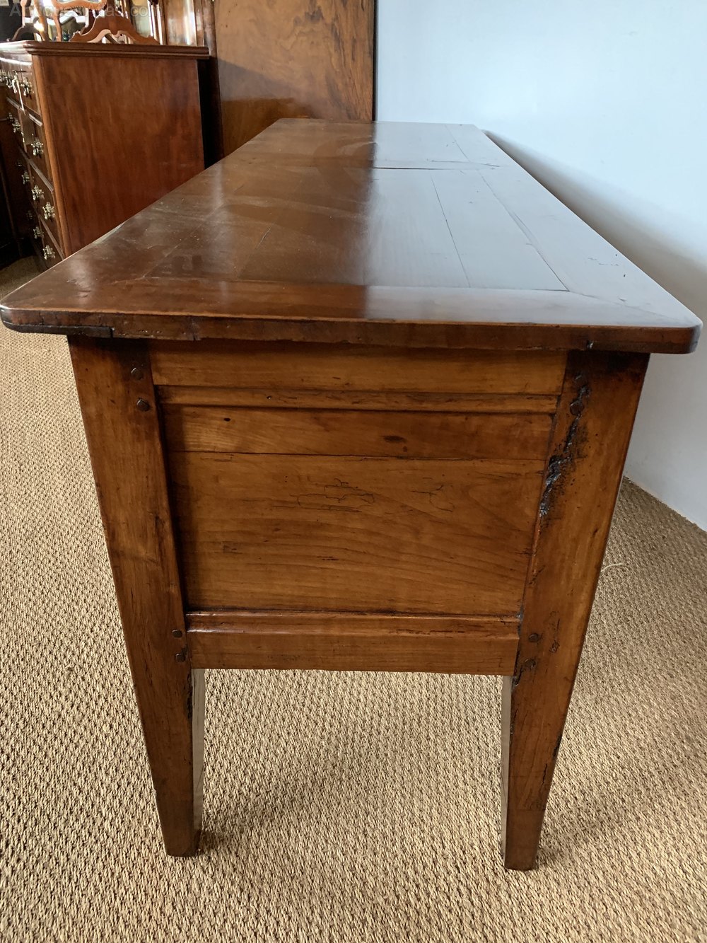Having been through our workshops been cleaned and polished all the joints are firm , we have thoroughly treated the piece for woodworm , at some stage the legs have been tipped and handles been replaced