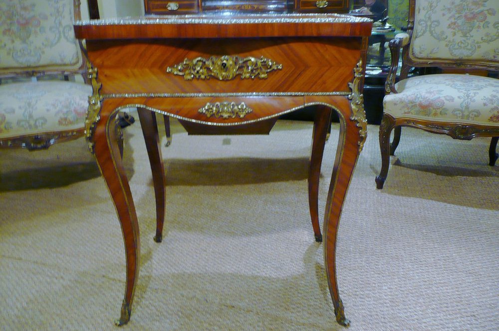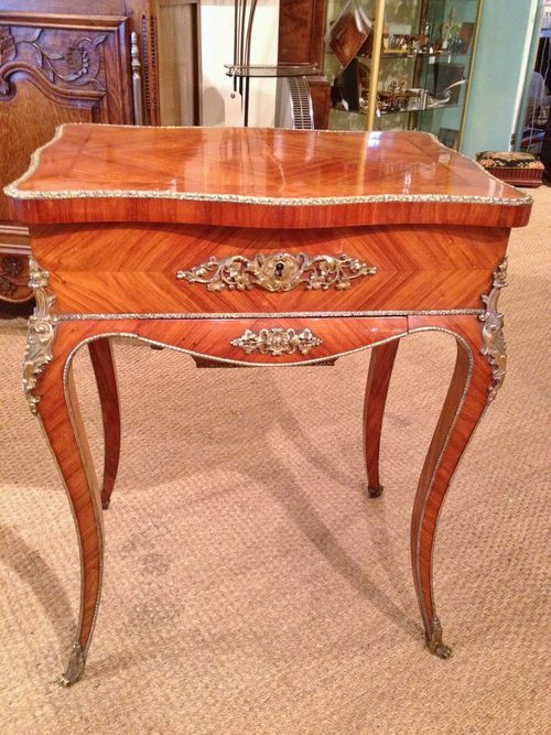 Delightful quality and well maintained kingwood dressing table in original condition. French c1870. Shown here in top showroom condition, this superb ladies dressing table with paris makers marks to the brass lock, is ready for immediate use. Please contact us for further details