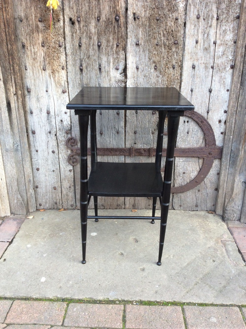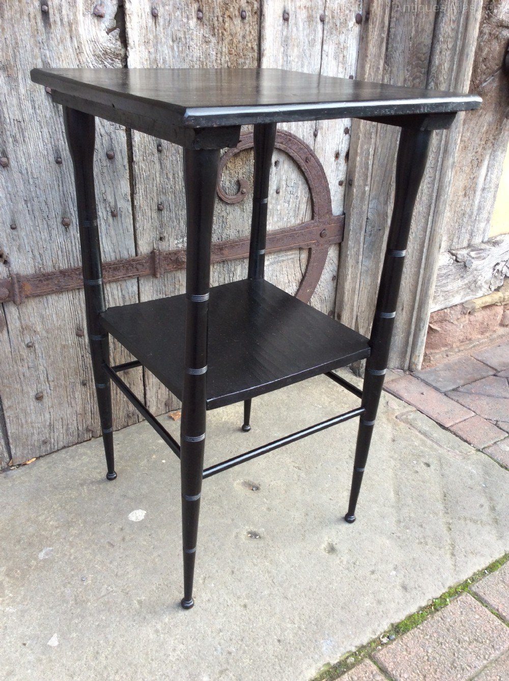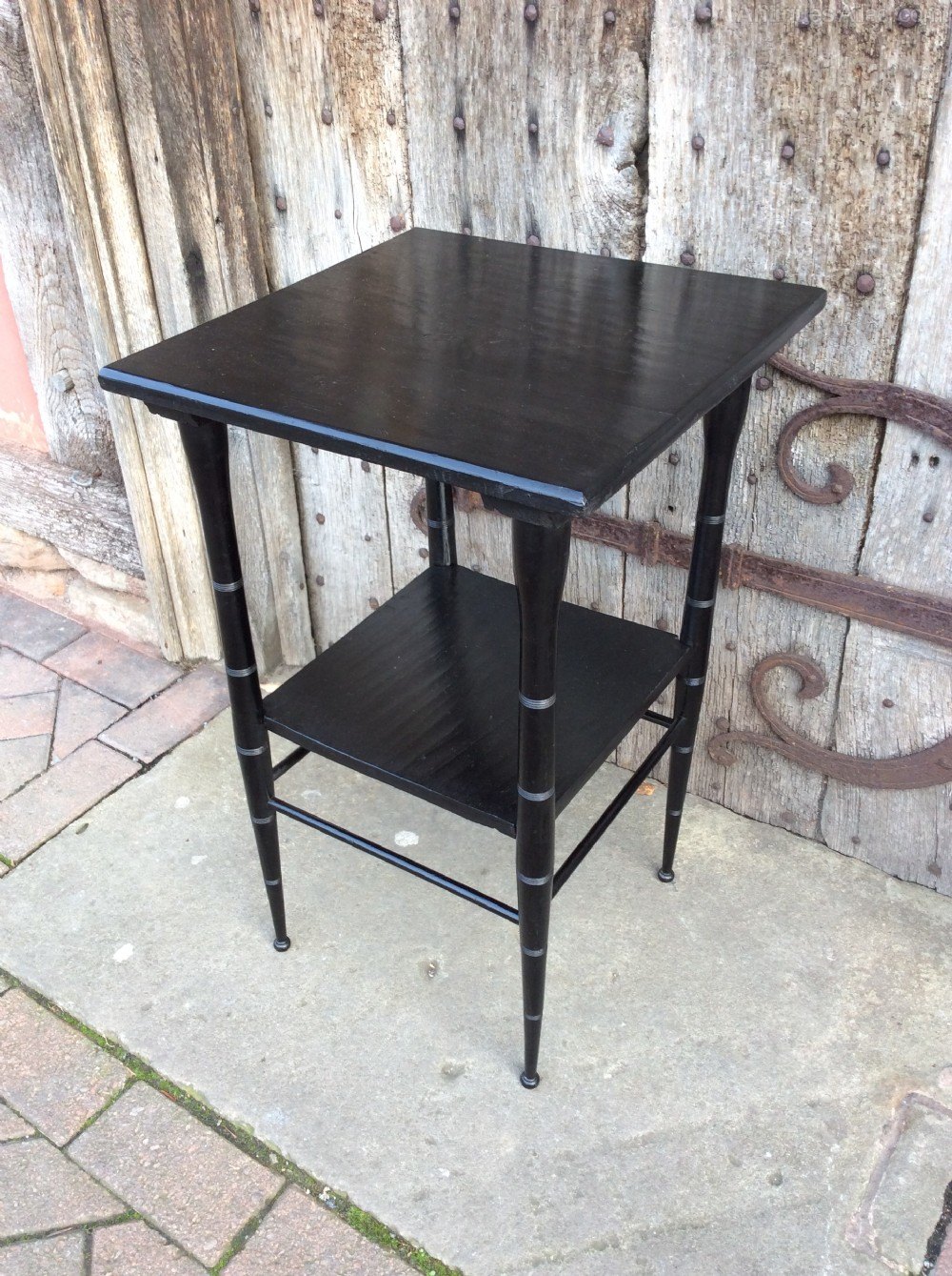 An ebonised E W Godwin style lamp table.