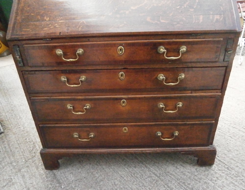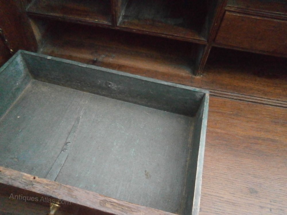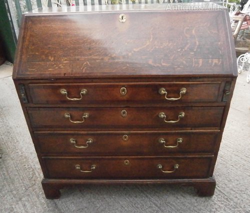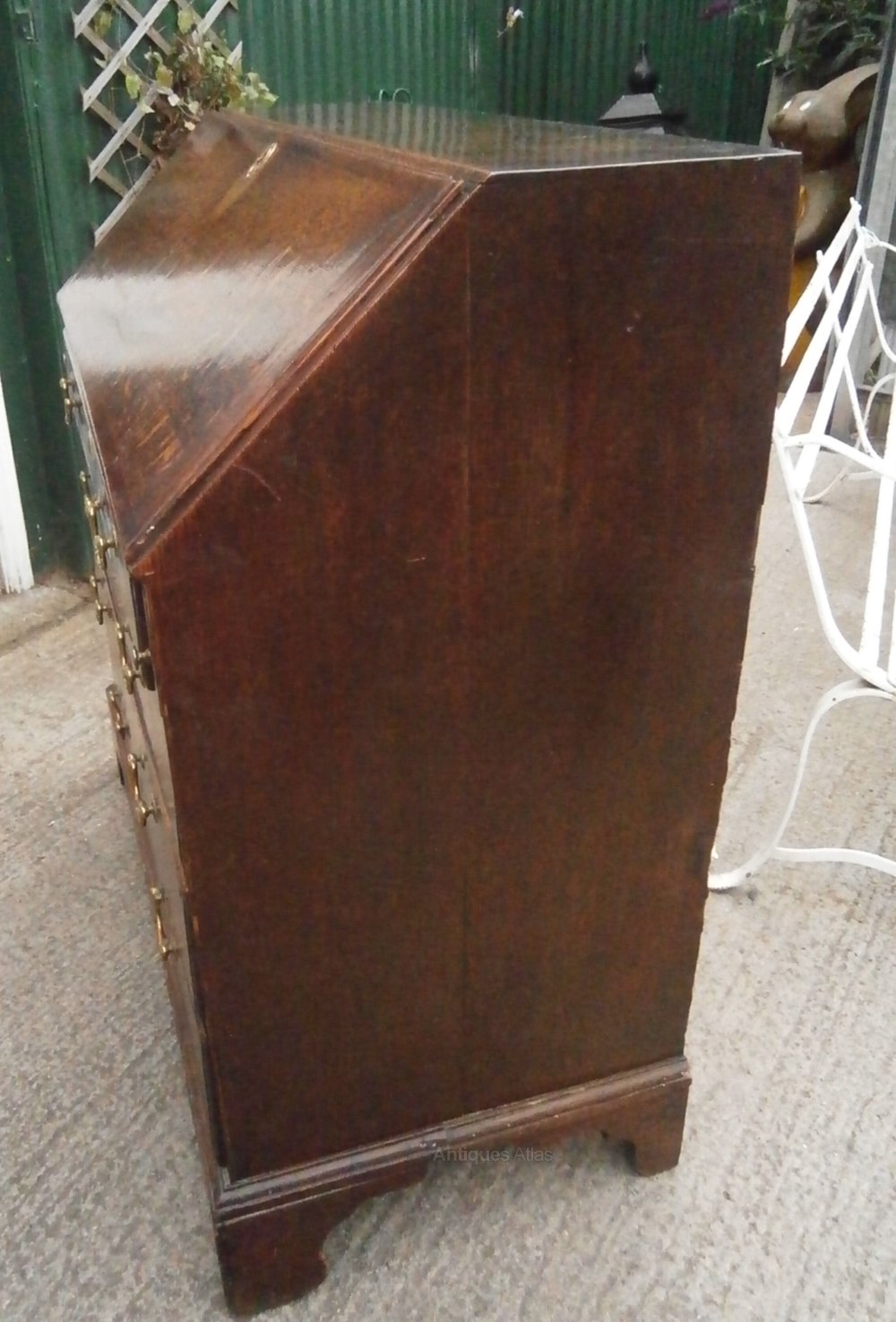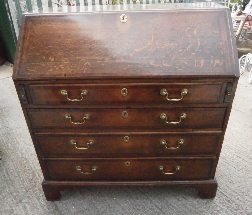 Early 1800s Oak Bureau with fitted interior,showing traces of blue paint work to the interior,it has 4 drawers to base,and a secret drawer,