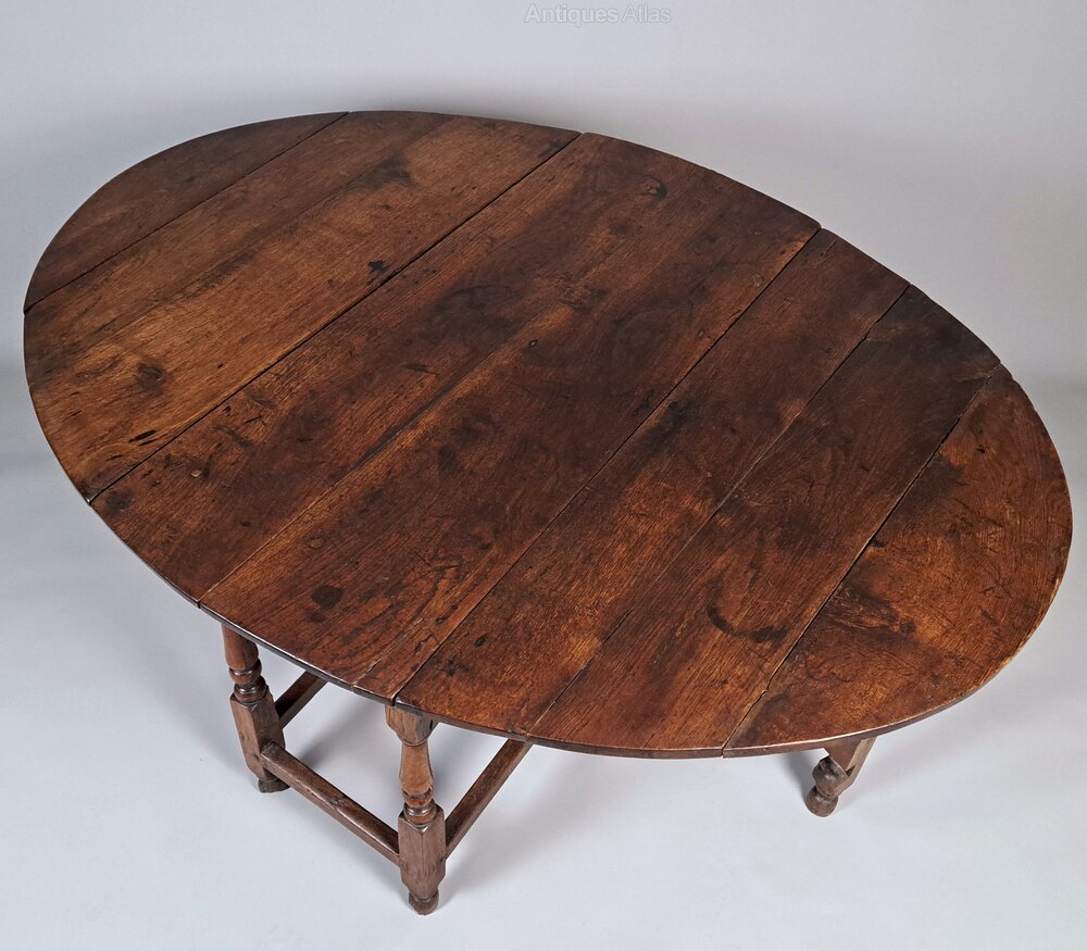 Solid and substantial, heavy and sturdy, the table was made in the traditional manner with tenon joints pegged through. Original iron hinges and the table leaves open smoothly and rest level and flat when extended. Marks, knocks, bracing added below the drop leaves. There are a few old worm holes here and there - all long since dead – and some old cracks, wear, losses, repairs and restorations. All entirely normal and acceptable in 300+ year old table and these minor faults are reflected in my price.