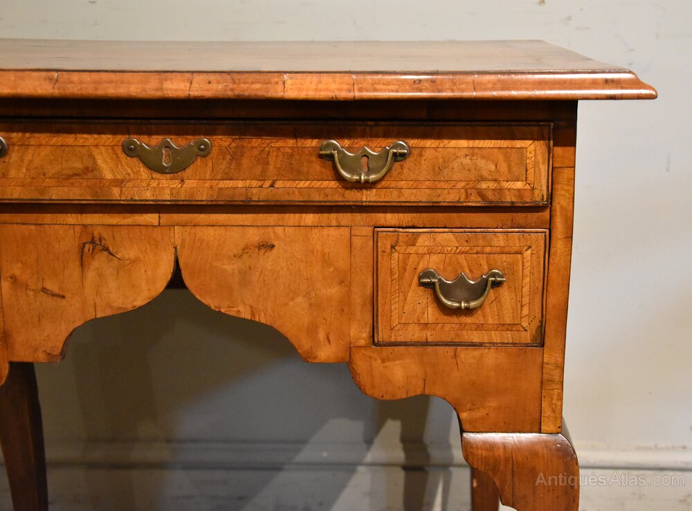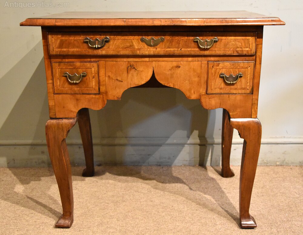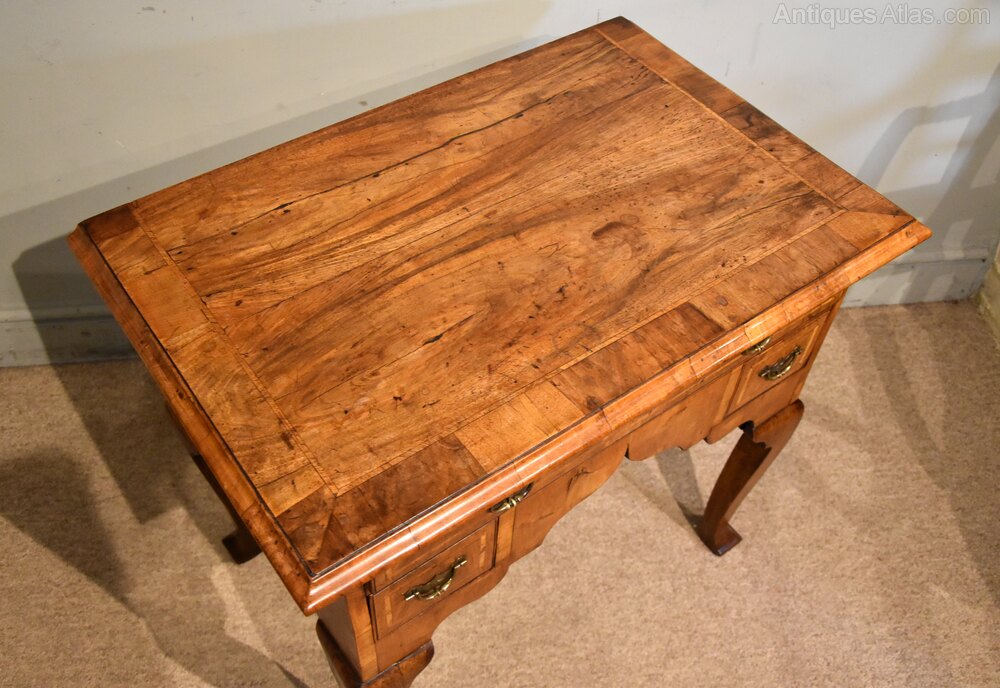 A stunning early 18th century walnut lowboy of superb colour and patina, crossbanded and stringing. The piece is raised upon faceted legs and is original throughout including brasses