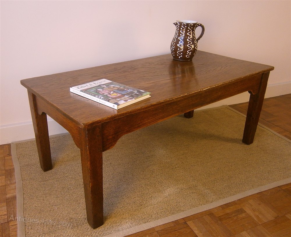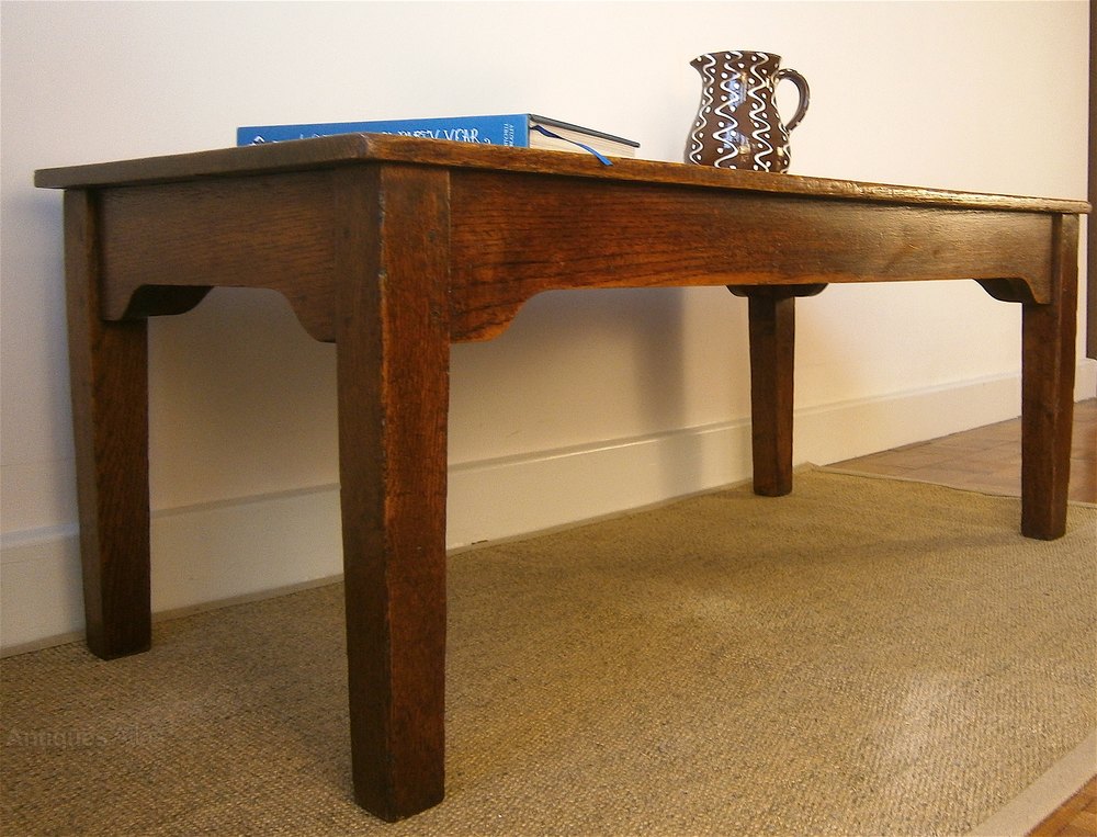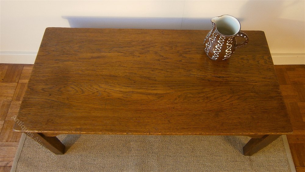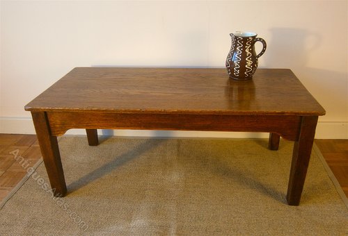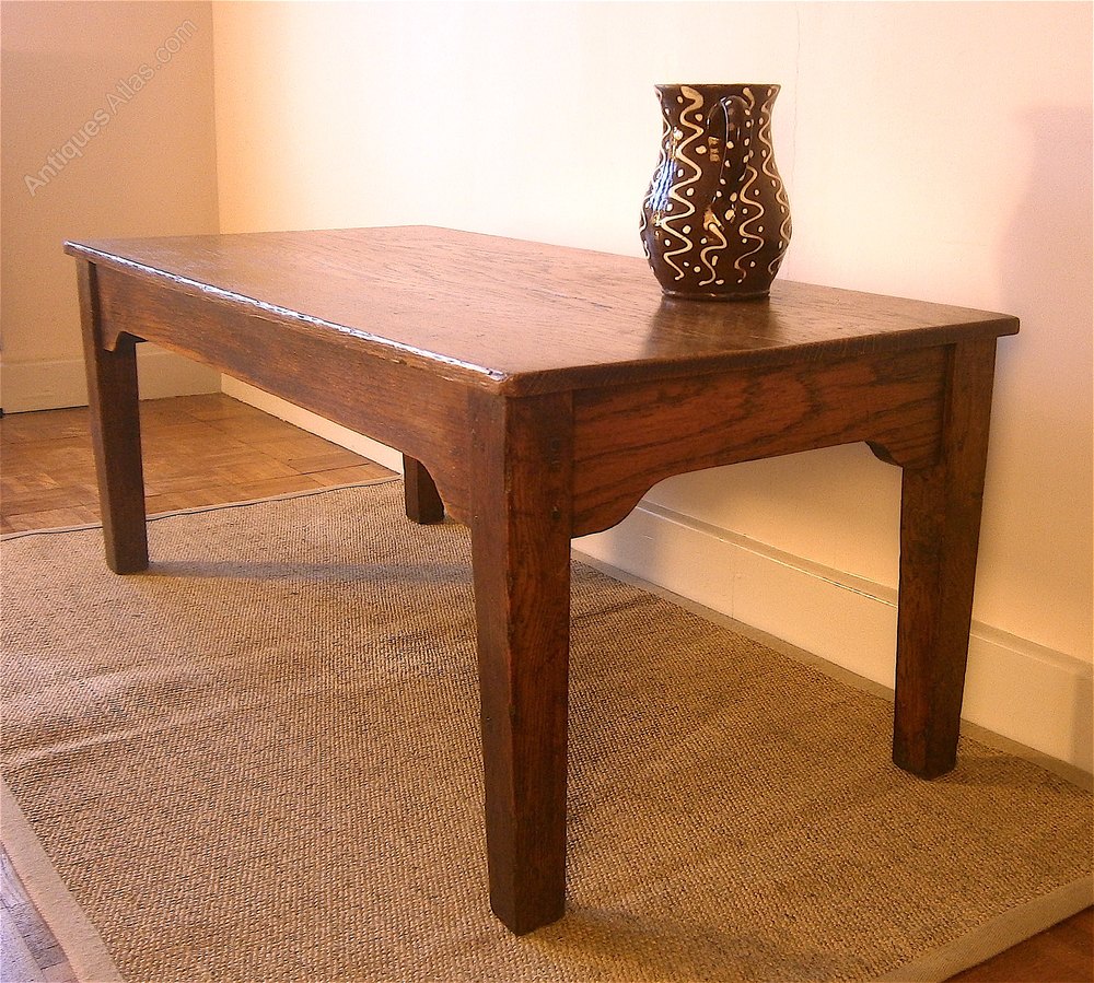 It would certainly make a good coffee table in a cottage or farmhouse setting. A nice warm Georgian Oak colour and original patina. We have oiled and waxed the top so it should have a degree of resilience to marking. A well made (mortise/tenon and dowel joints) rustic country piece