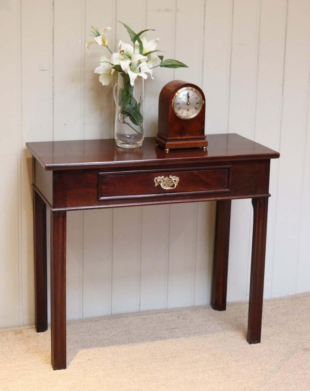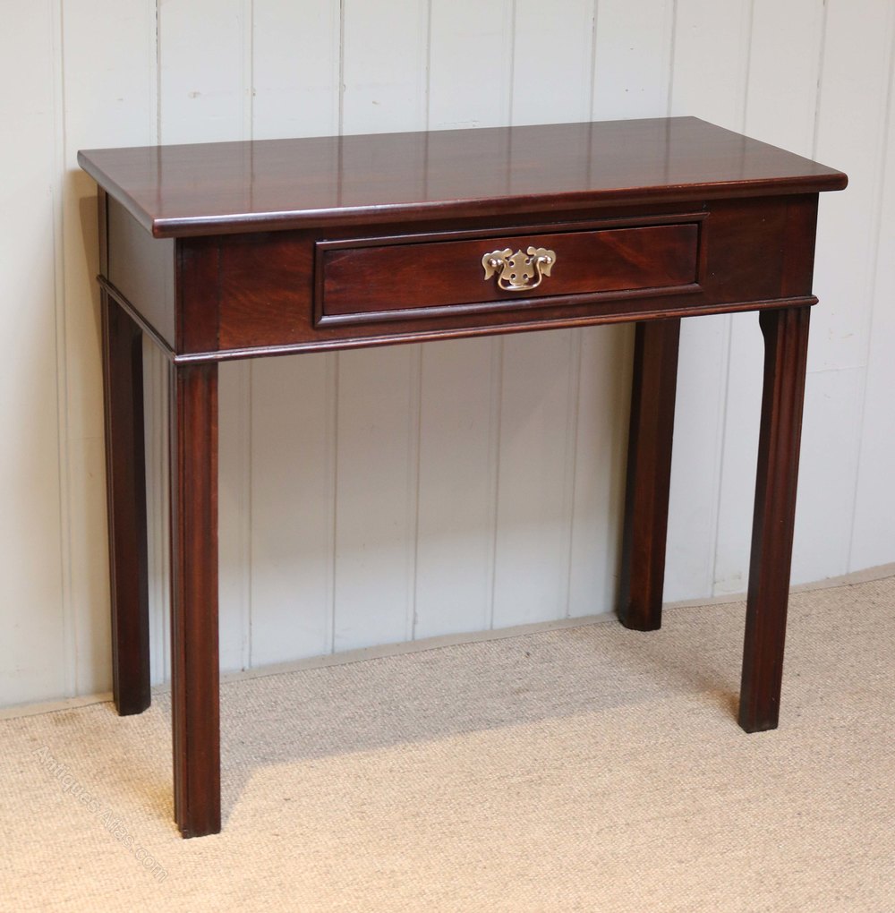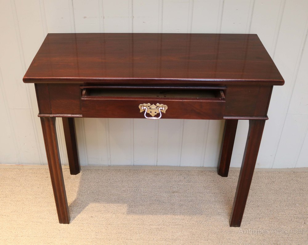 Early 19th century mahogany table having a deep frieze with a single drawer within raised on straight reeded legs