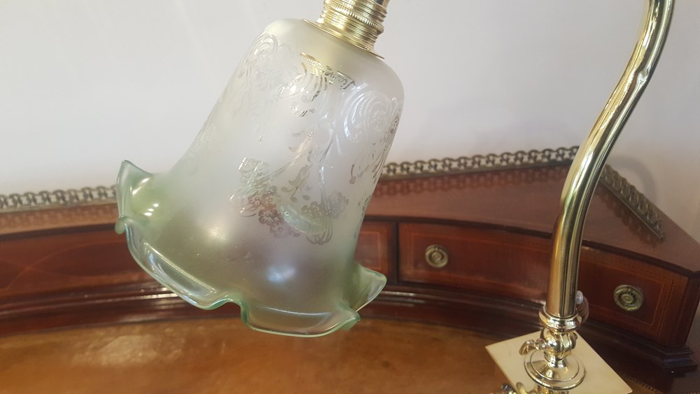 A Pair of Brass and Green Glass Banker’s Lamps
