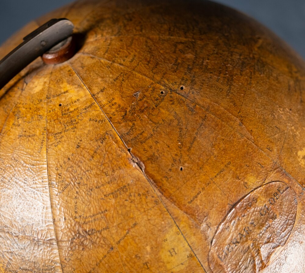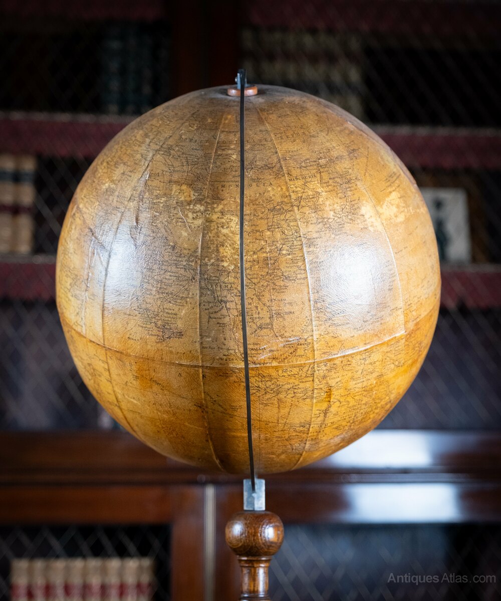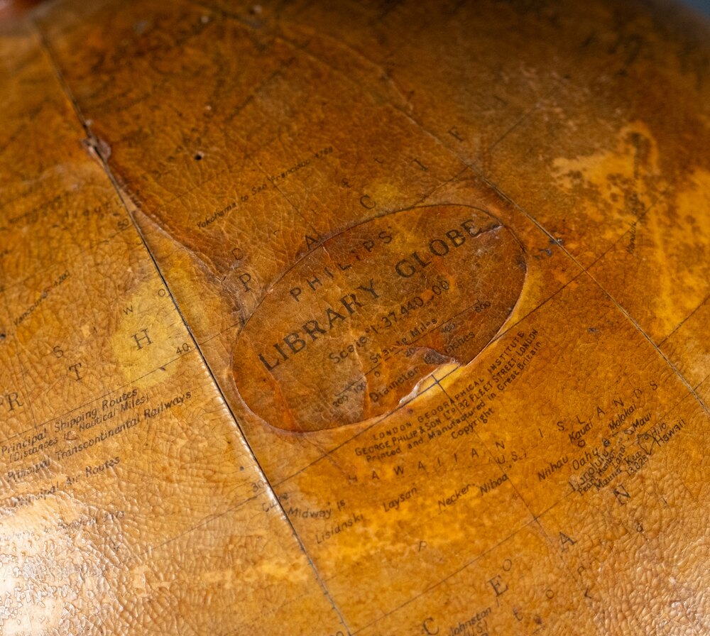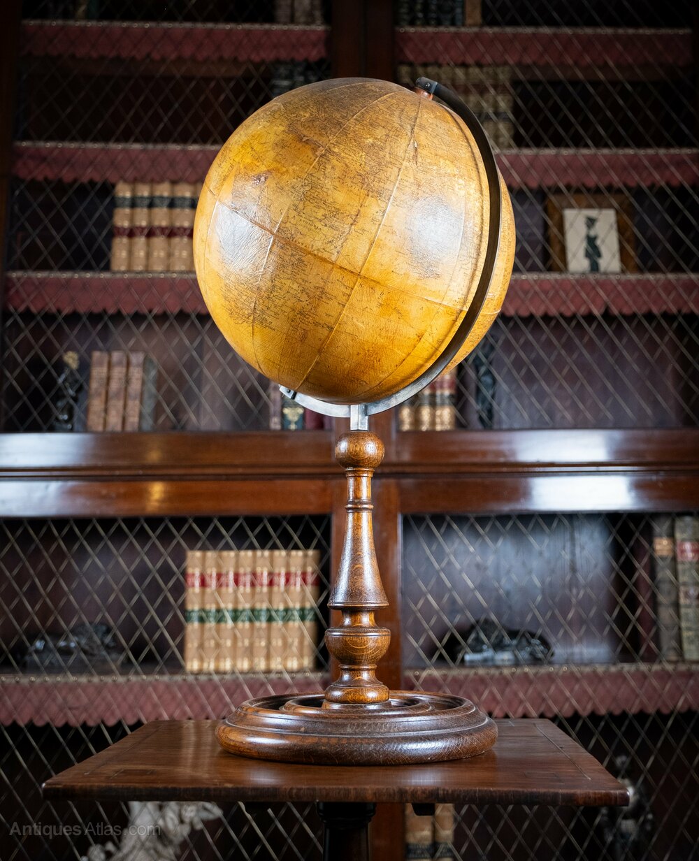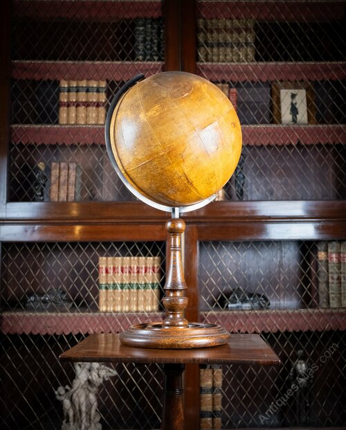 A wonderfully patinated early 20th century Philips & Son Library Globe of good proportions on a turned oak stand.