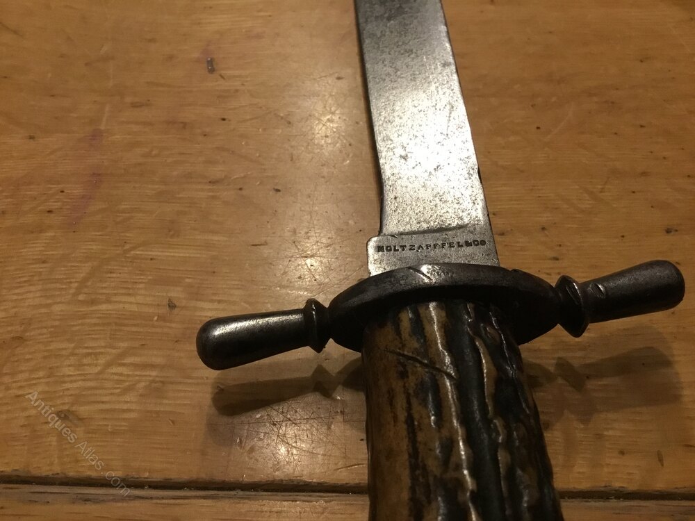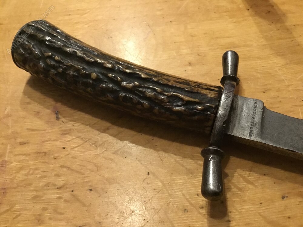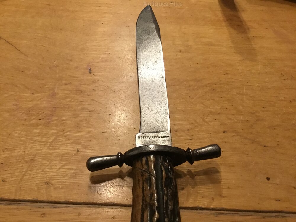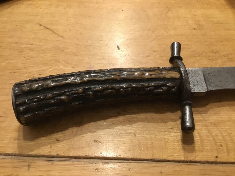 Nice Early British Bowie knife , sheath looks like it was made latter but fits perfectly , blade measures 6.5 inches and overall measures 11.5 inches on the blade is stamped Moltzapffel &co a very impressive Bowie and highly collectable,