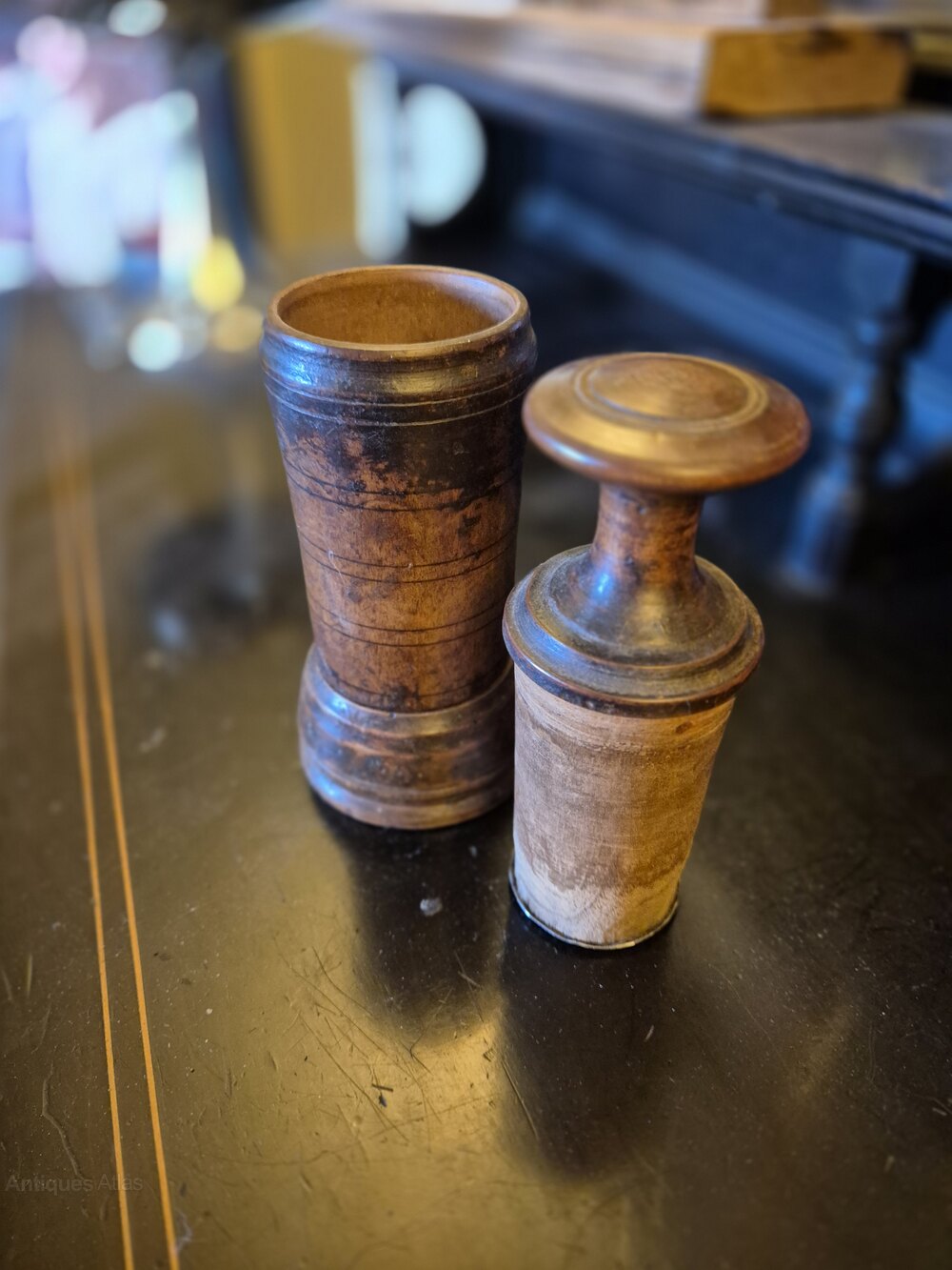 2 Hand Made 19th Century Treen Pharmacy Containers
