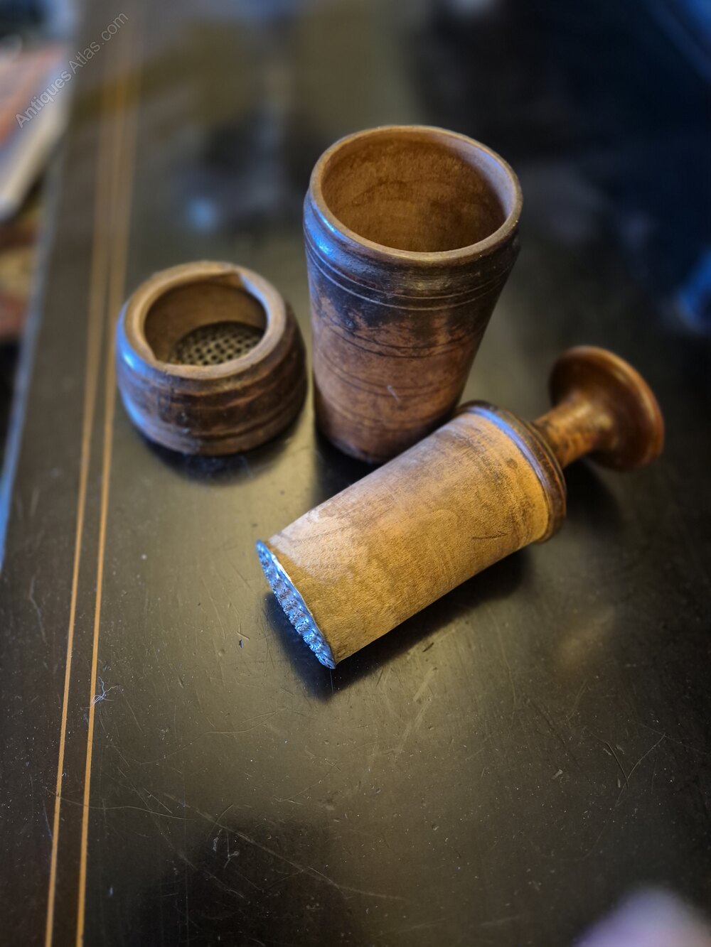 3 19th century Hand Made Treen Items, Pounce,