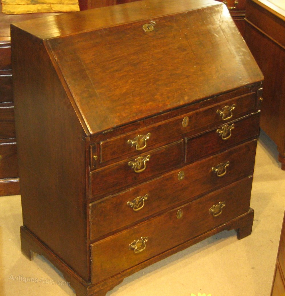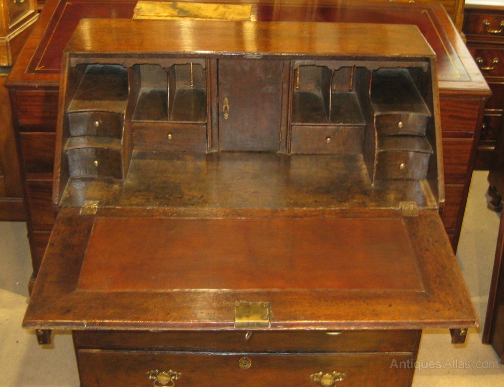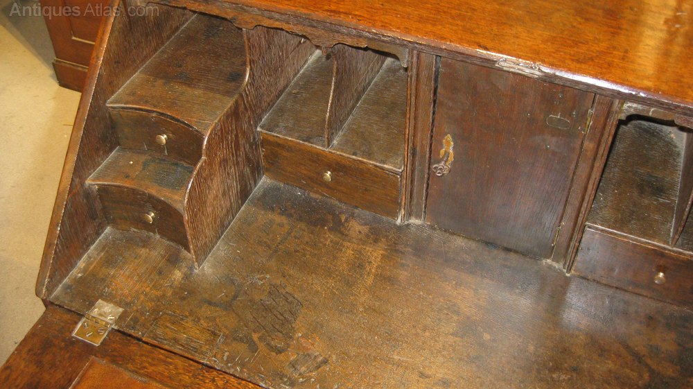 Early Georgian oak bureau with a fitted interior